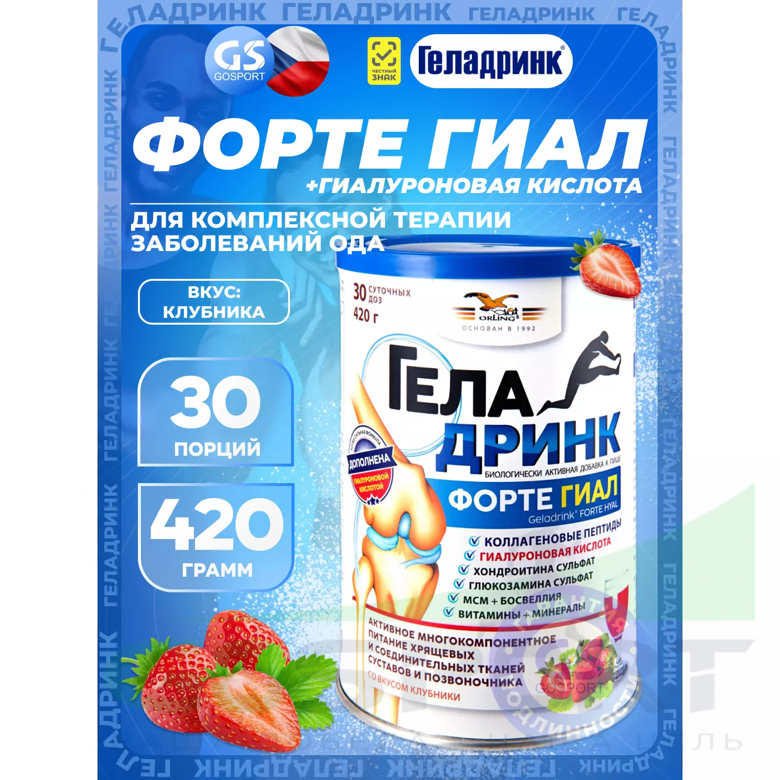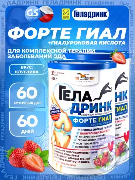 ГЕЛАДРИНК ФОРТЕ (Geladrink Forte) ГИАЛ 420 г, Клубника — Для подвижности и гибкости суставов