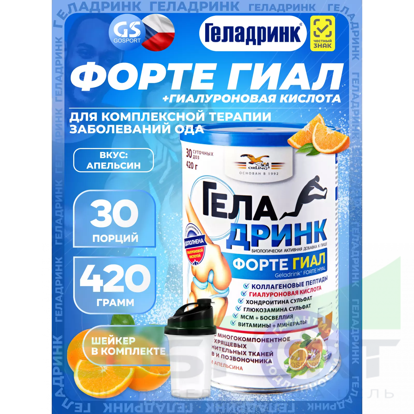 ГЕЛАДРИНК ФОРТЕ (Geladrink Forte) ГИАЛ + Шейкер 420 г + шейкер, Апельсин — Для подвижности и гибкости суставов