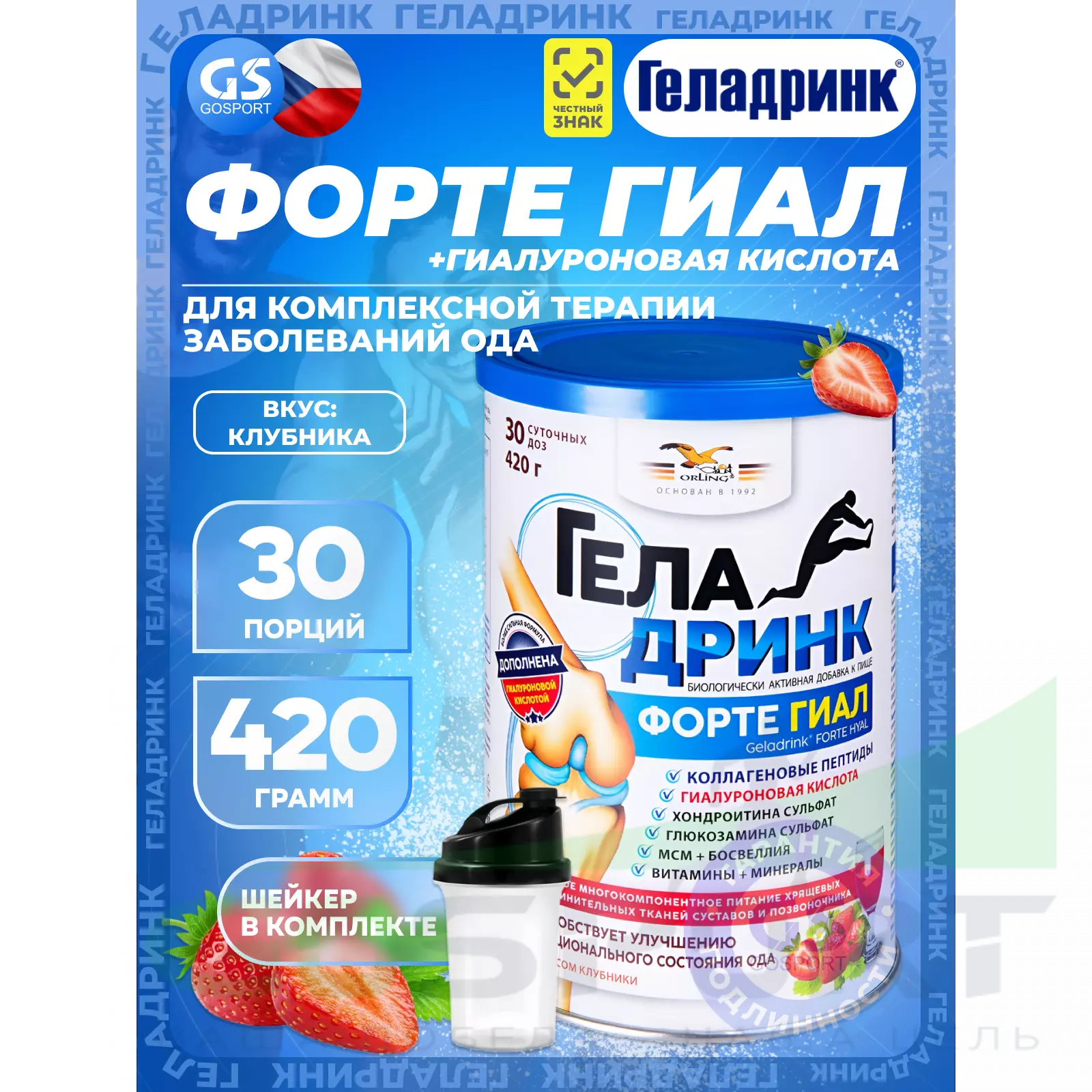 ГЕЛАДРИНК ФОРТЕ (Geladrink Forte) ГИАЛ + Шейкер 420 г + шейкер, Клубника — Для подвижности и гибкости суставов