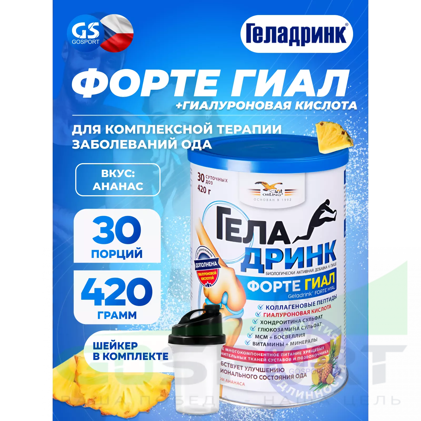 ГЕЛАДРИНК ФОРТЕ (Geladrink Forte) ГИАЛ + Шейкер 420 г + шейкер, Ананас — Для подвижности и гибкости суставов