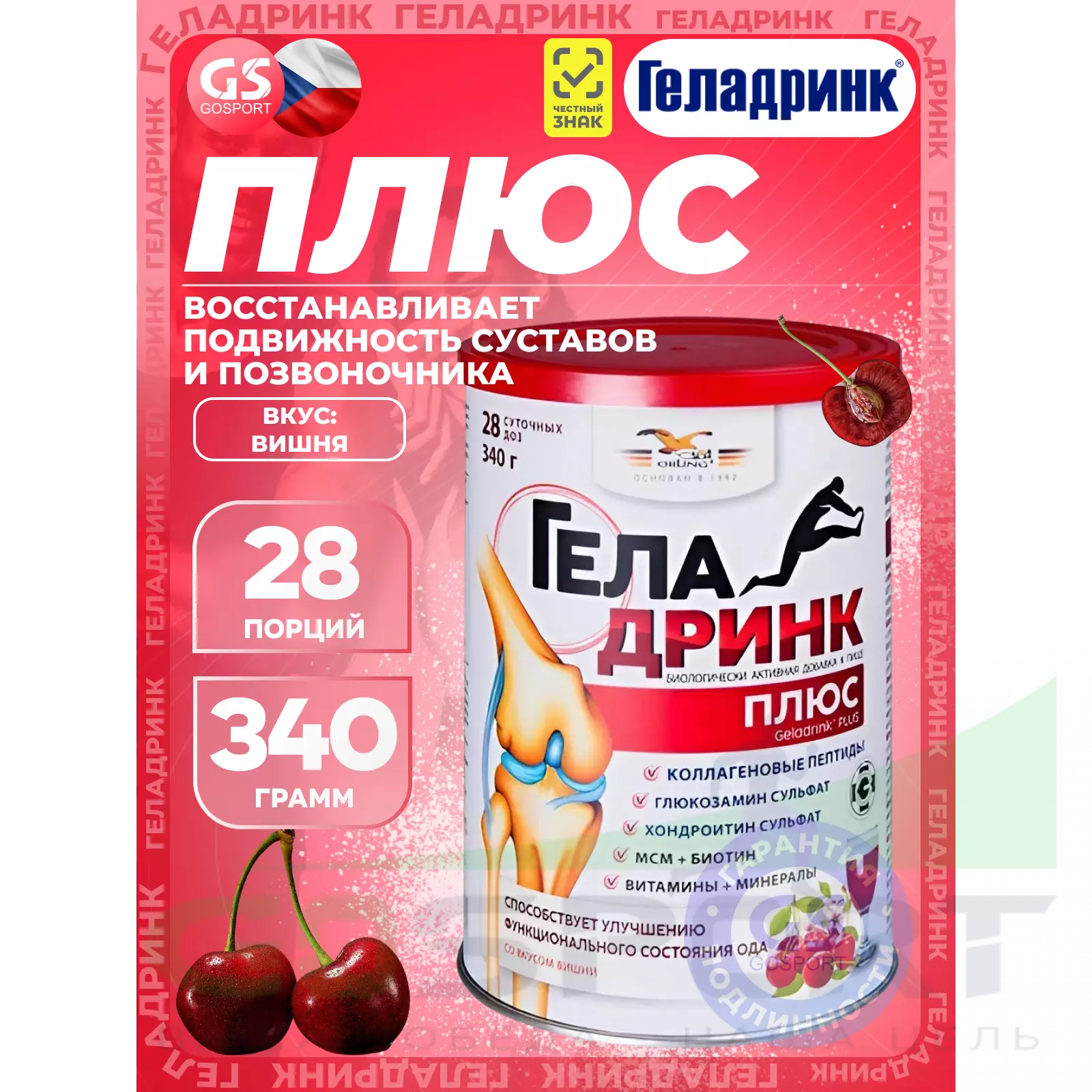 ГЕЛАДРИНК Плюс (Geladrink Plus) 340 г, Вишня — Для опорно-двигательного аппарата
