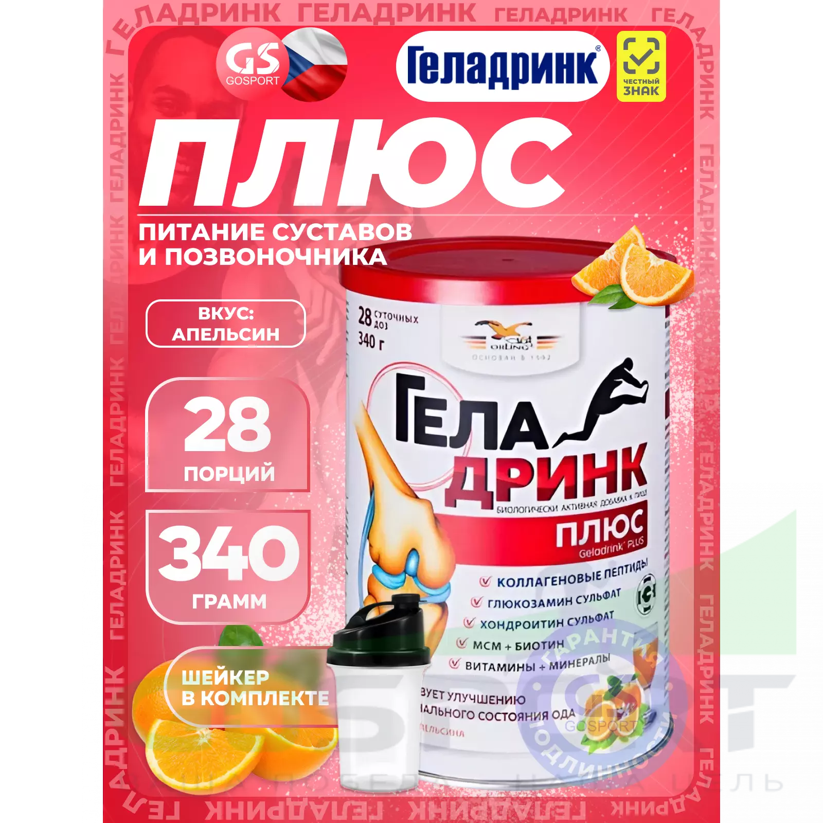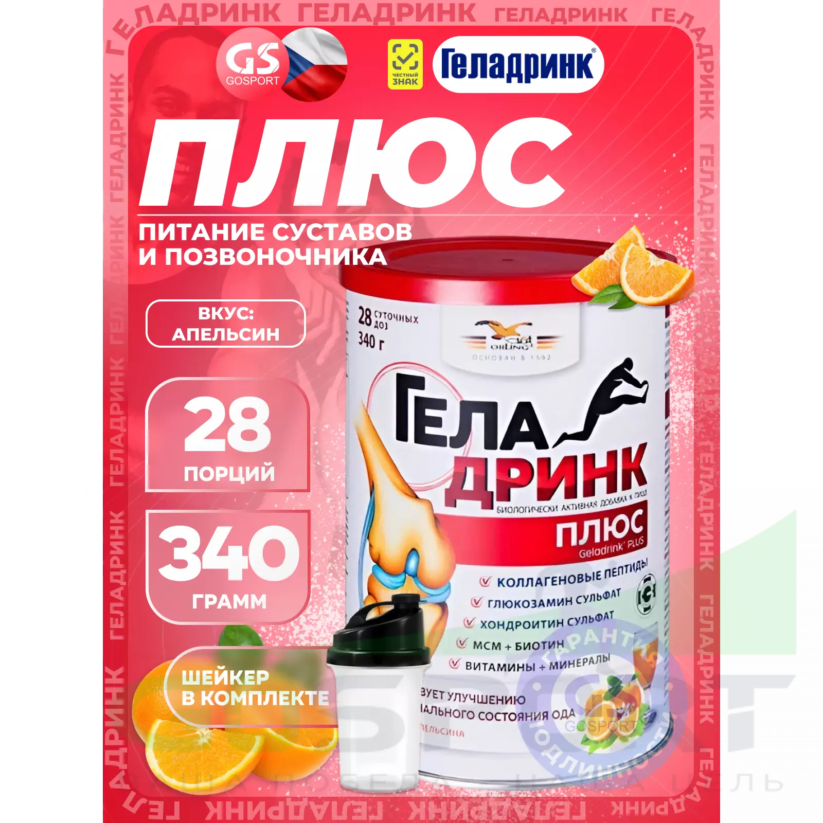 ГЕЛАДРИНК Плюс (Geladrink Plus) + Шейкер 340 г + шейкер, Апельсин — Для опорно-двигательного аппарата