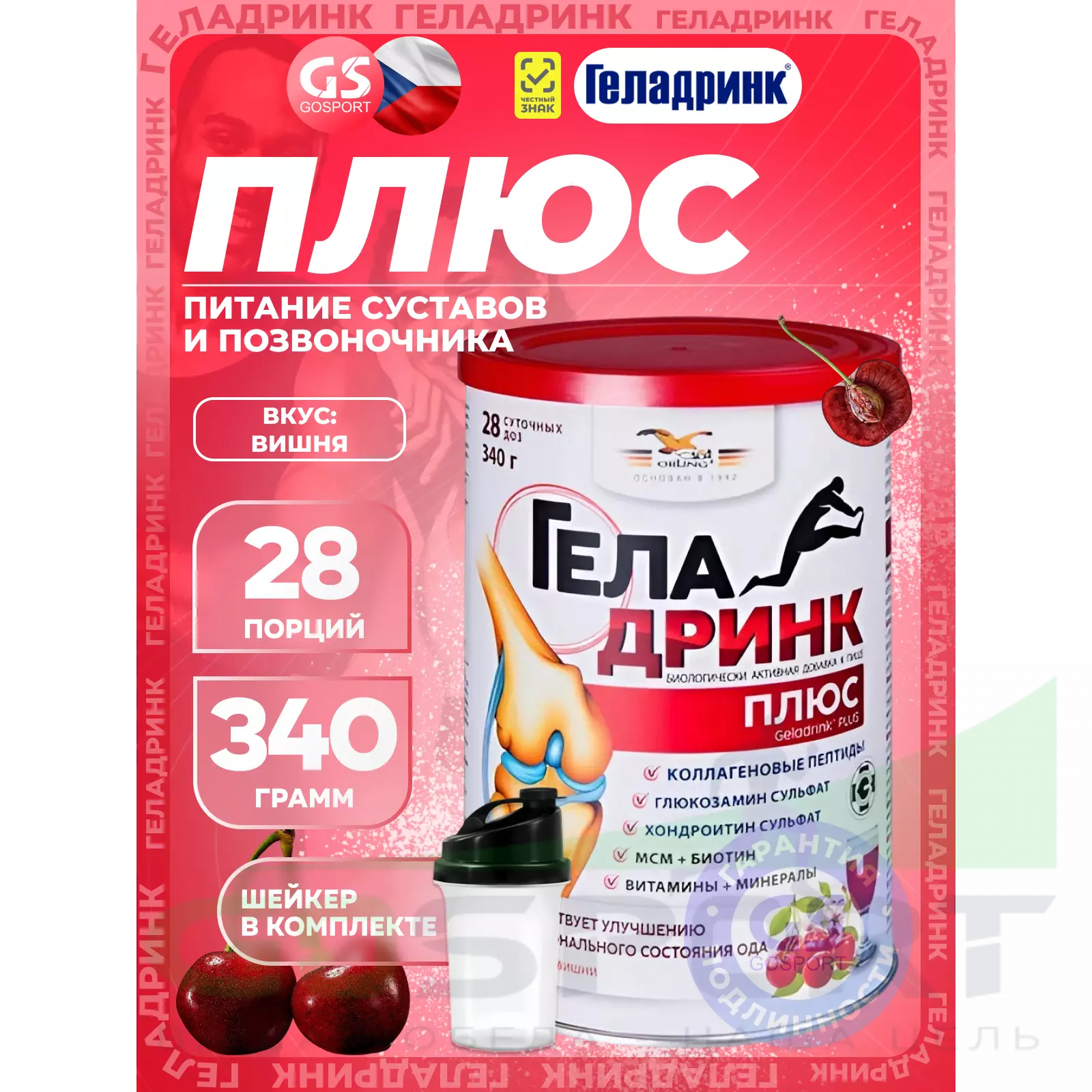 ГЕЛАДРИНК Плюс (Geladrink Plus) + Шейкер 340 г + шейкер, Вишня — Для опорно-двигательного аппарата
