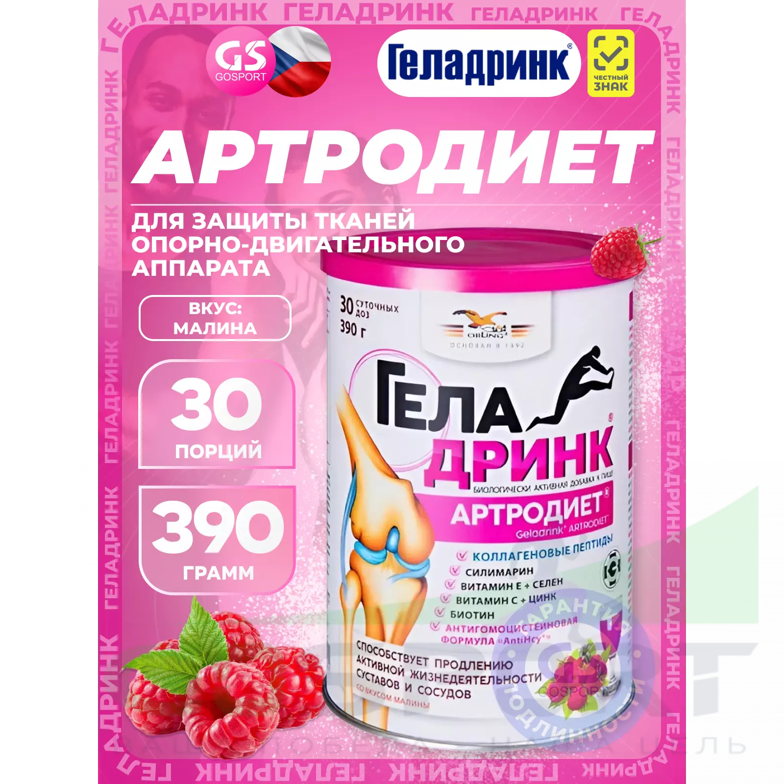 ГЕЛАДРИНК Артродиет (Geladrink Artrodiet) 390 г, Малина — Для суставов и опорно-двигательного аппарата