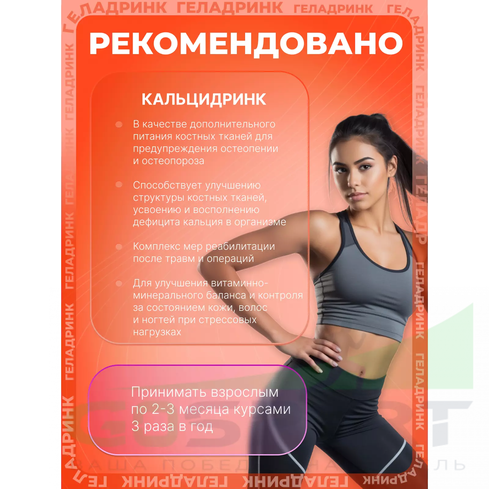 «Кальцидринк» — остеонутрицевтик для питания костных тканей опорно-двигательного аппарата. Содержит биологически активный комплекс остеогенных пептидов коллагена и минералов, позволяющих поддерживать нормальный метаболизм в костях и способствующих регенерации костных тканей и улучшению состояния кожи, волос и ногтей.