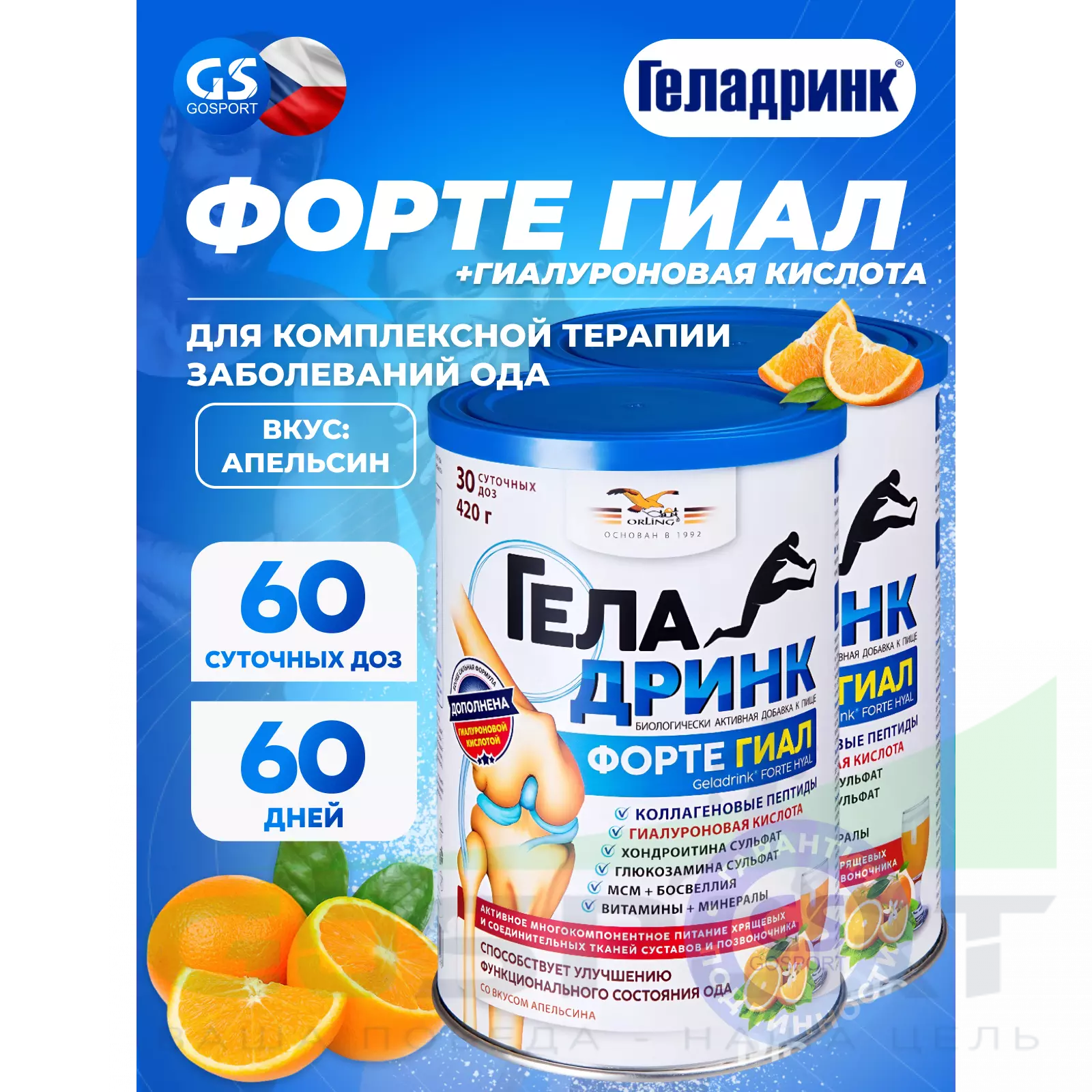 ГЕЛАДРИНК ФОРТЕ (Geladrink Forte) ГИАЛ 2 х 420 г, Апельсин — Для подвижности и гибкости суставов