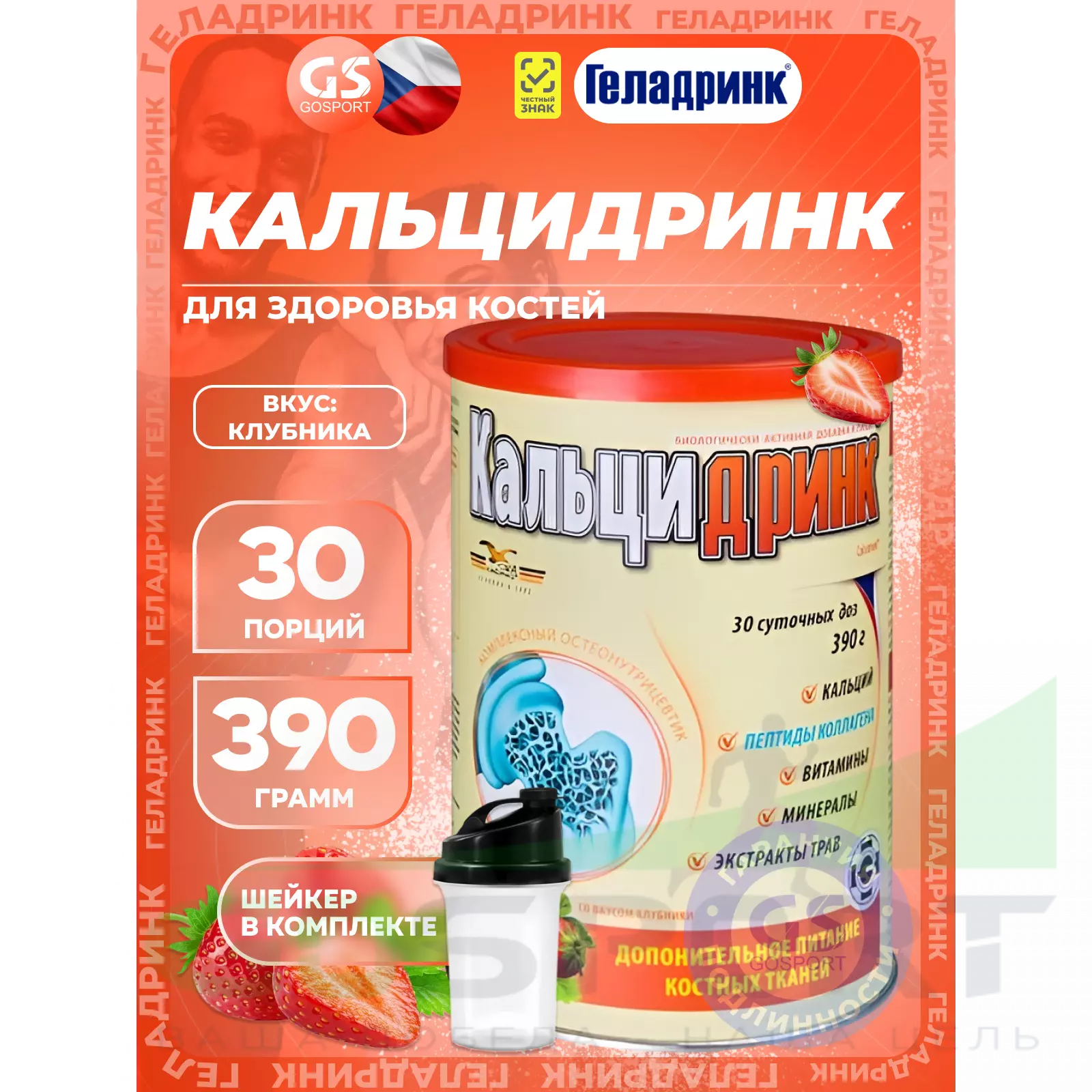 ГЕЛАДРИНК Кальцидринк (CALCIDRINK) + Шейкер 390 г + шейкер, Клубника — Для здоровья костей