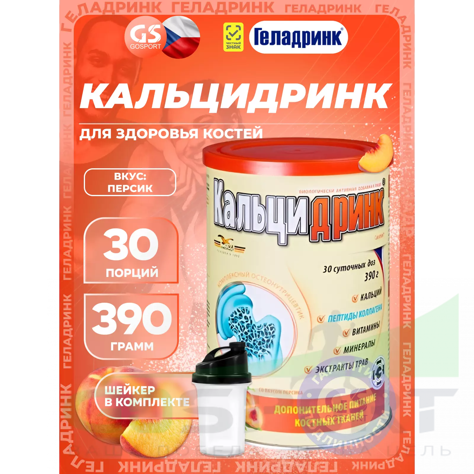 ГЕЛАДРИНК Кальцидринк (CALCIDRINK) + Шейкер 390 г + шейкер, Персик — Для здоровья костей