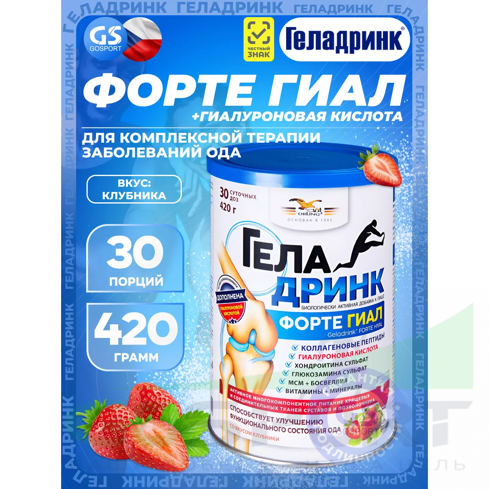 ГЕЛАДРИНК ФОРТЕ (Geladrink Forte) ГИАЛ 420 г, Клубника — Для подвижности и гибкости суставов