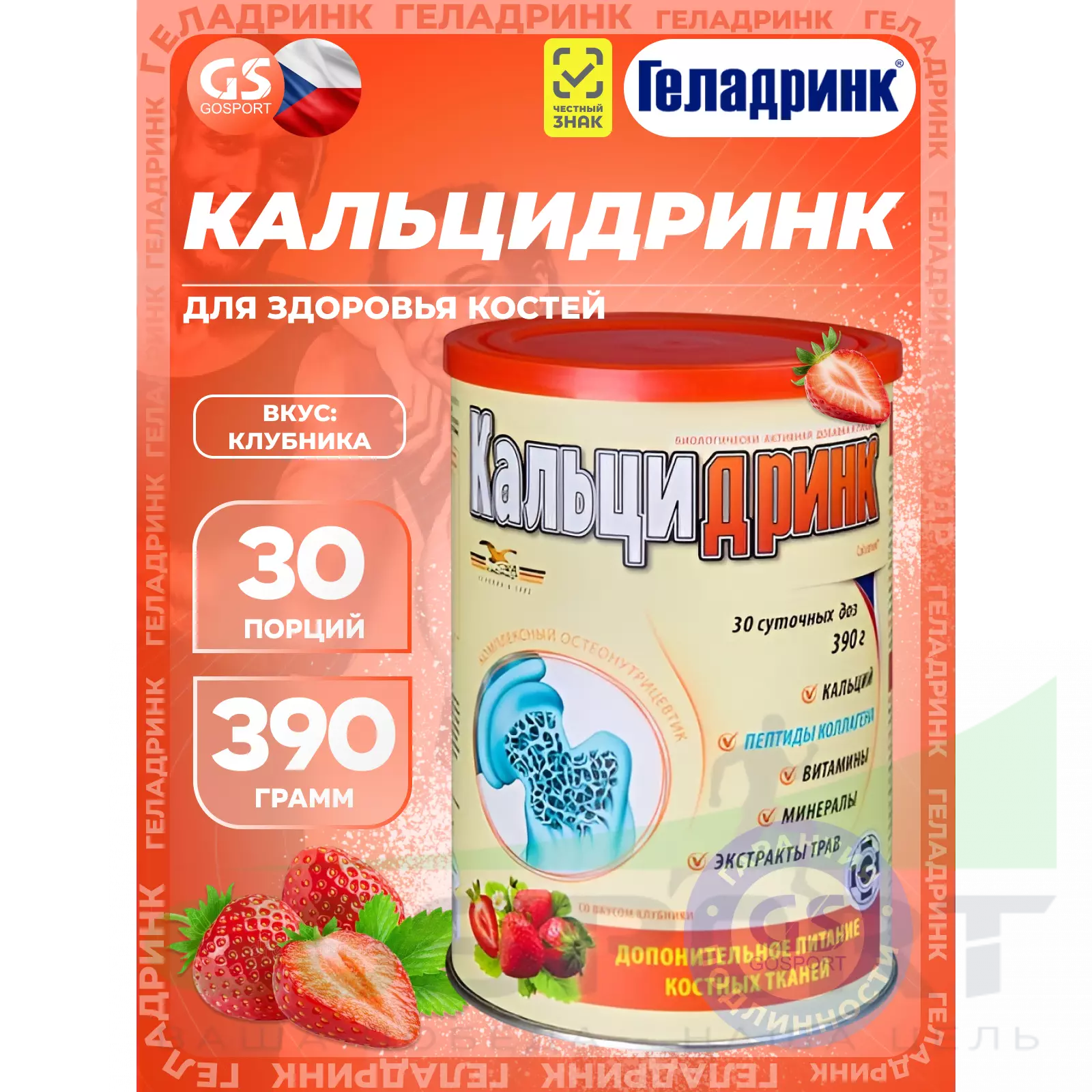 «Кальцидринк» — остеонутрицевтик для питания костных тканей опорно-двигательного аппарата. Содержит биологически активный комплекс остеогенных пептидов коллагена и минералов, позволяющих поддерживать нормальный метаболизм в костях и способствующих регенерации костных тканей и улучшению состояния кожи, волос и ногтей.