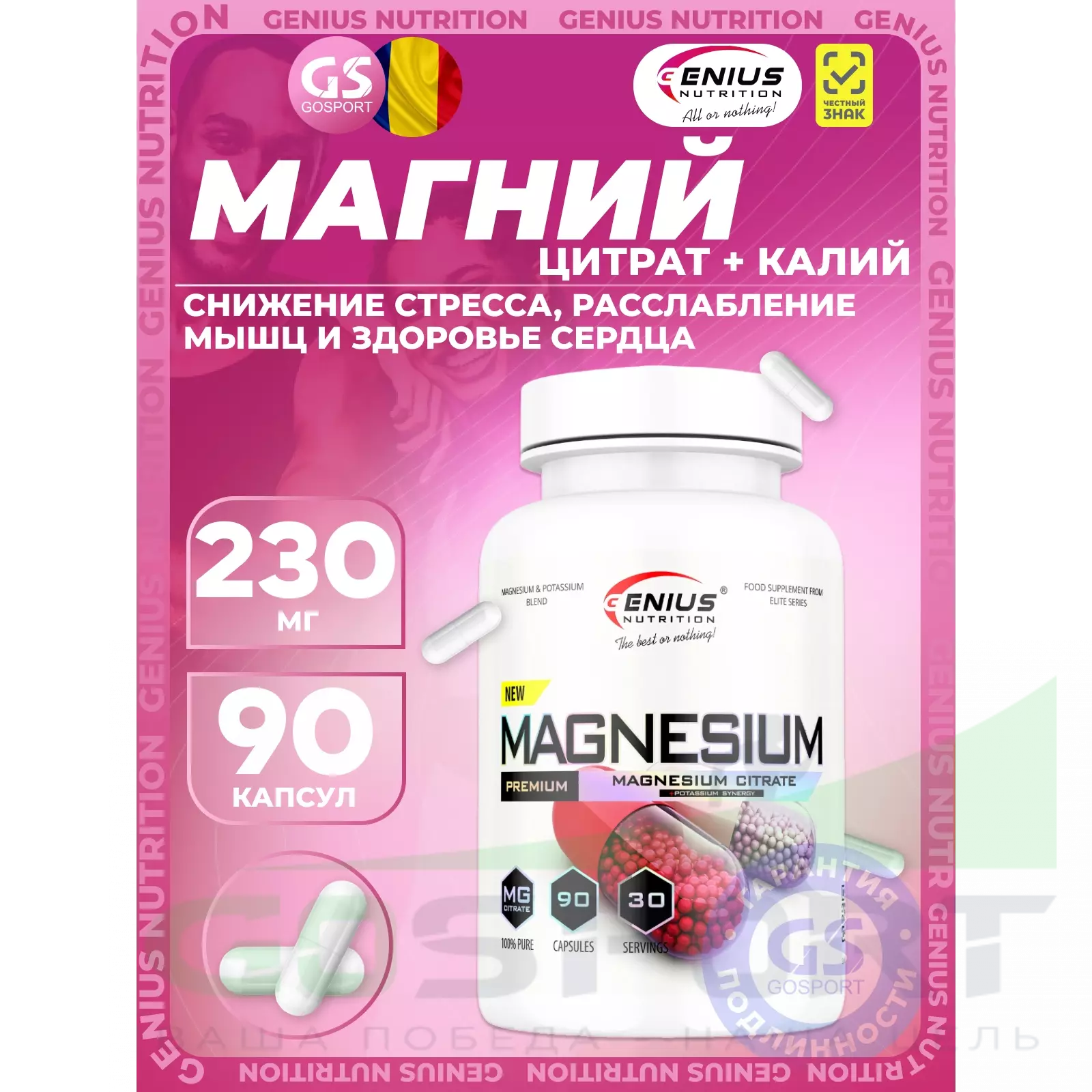 Genius Nutrition Magnesium 230 mg 90 капсул — Снижение стресса, расслабление мышц и здоровье сердца