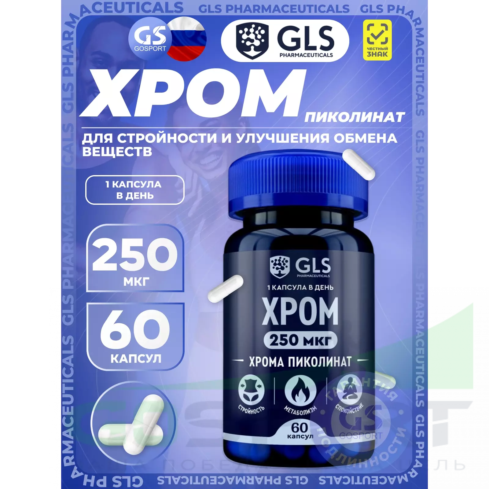 GLS pharmaceuticals Хром 250 мкг 60 капсул — для снижения веса, контроля аппетита и щитовидной железы