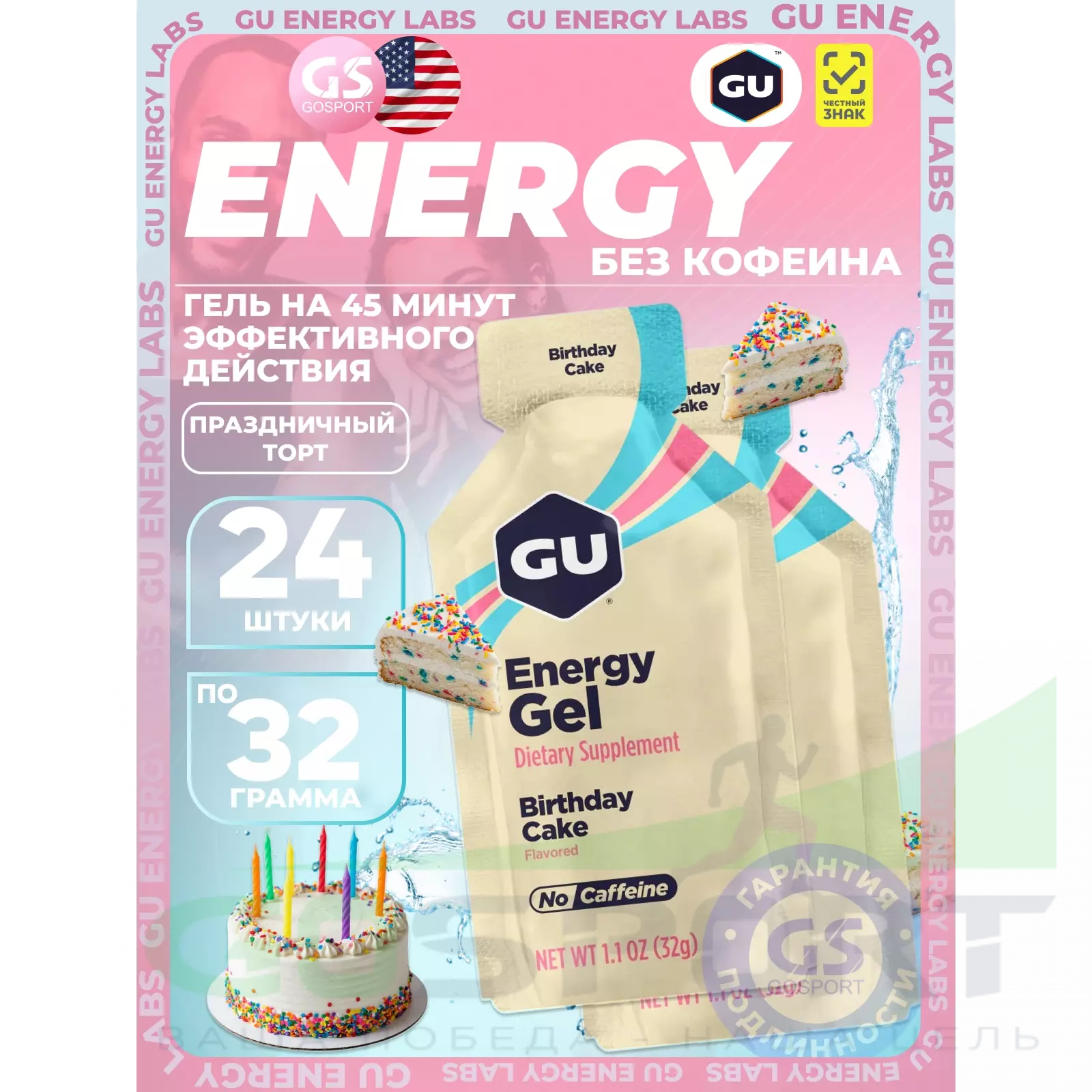 GU Energy Labs GU Original Energy Gel no caffeine 24 x 32 г, Праздничный торт — Высокая калорийность, два вида углеводов, лёгкий