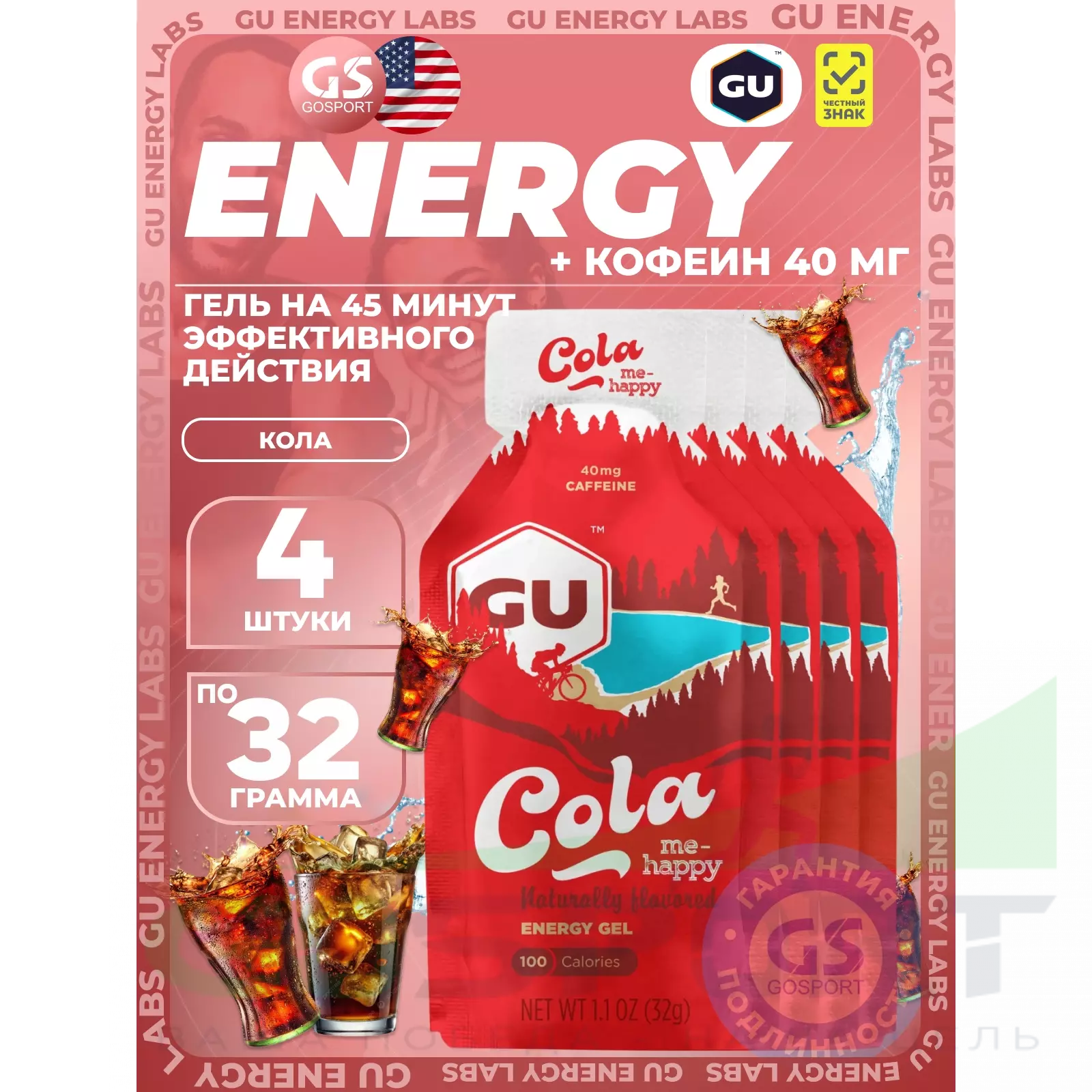 GU Original Energy Gel 40mg caffeine 4 x 32 г, Кола