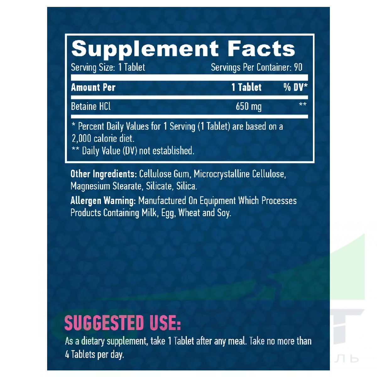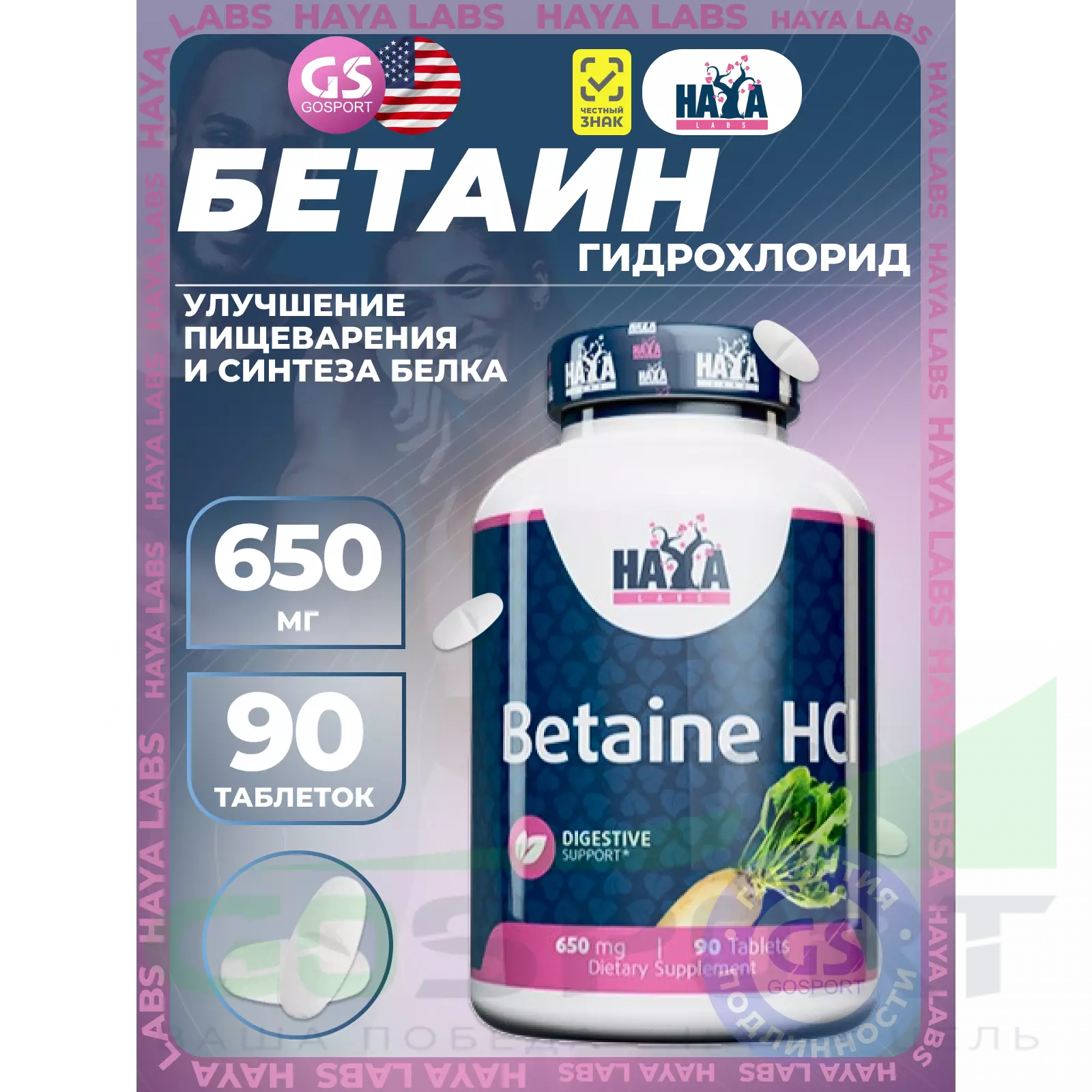 Haya Labs Betaine HCl 650 mg 90 таблеток  Haya Labs Betaine HCl 650 mg 90 таблеток