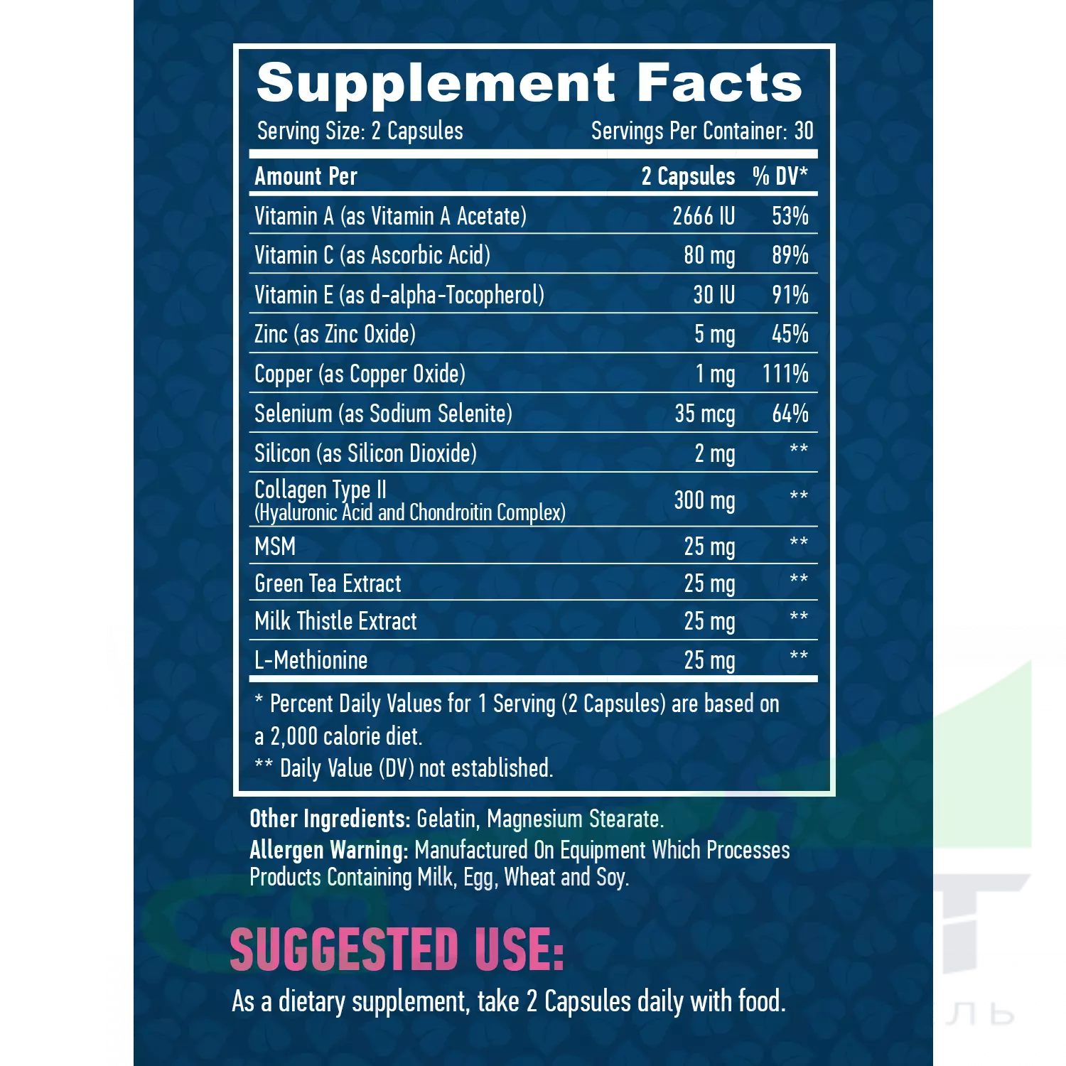 - MSM: Отвечает за эластичность кожи и сосудов.