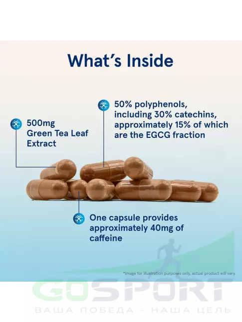 - ускорение метаболизма: одна капсула содержит фитонутриенты, равные примерно 2–3 чашкам зелёного чая;