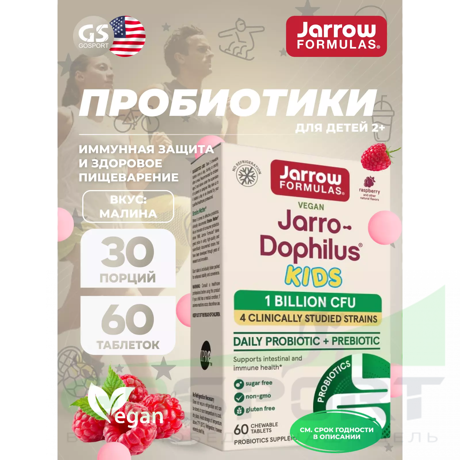 Jarro-Dophilus Kids 1 billion CFU 60 жевательных таблеток, Малина