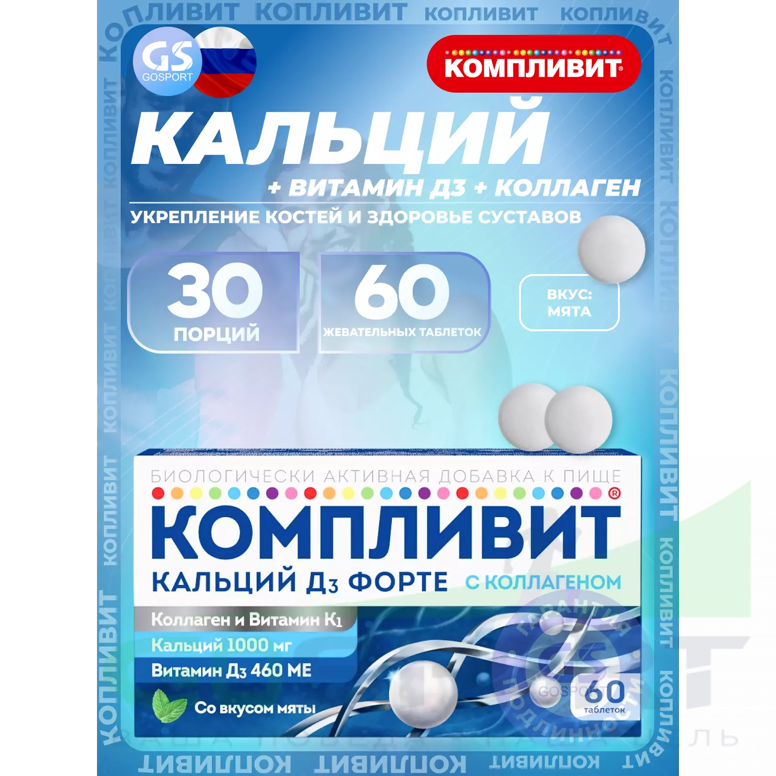 Компливит Кальций Д3 форте с коллагеном 60 таблеток, Мята  Компливит Кальций Д3 форте с коллагеном 60 таблеток, Мята  Компливит Кальций Д3 форте с коллагеном 60 таблеток, Мята  Компливит Кальций Д3 форте с коллагеном 60 таблеток, Мята