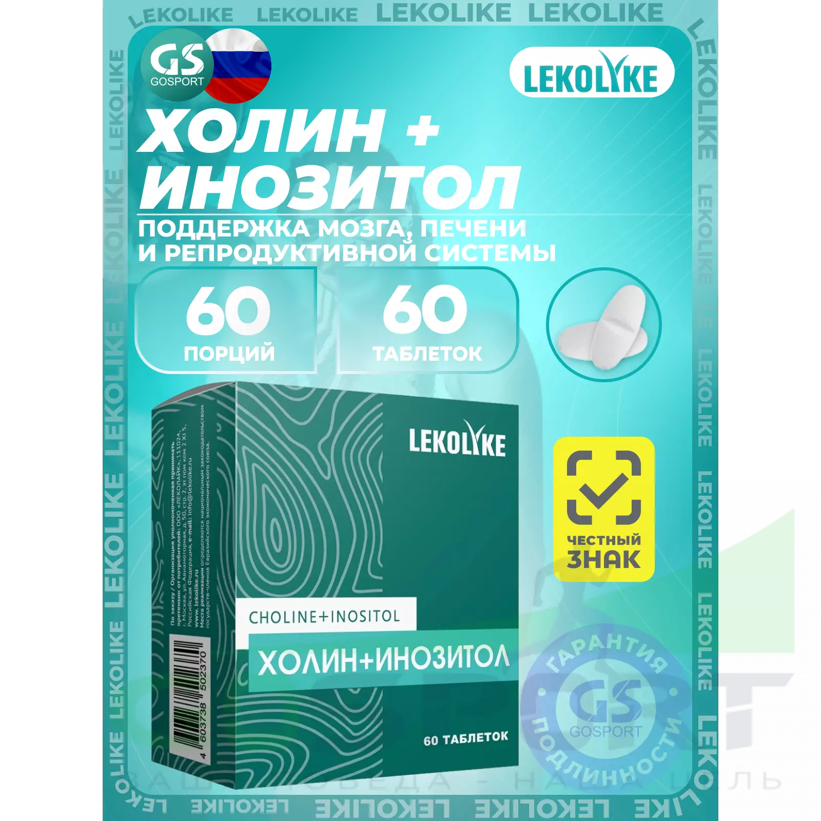 LEKOLIKE Холин+Инозитол 60 таблеток — Поддержка мозга, печени и репродуктивной системы