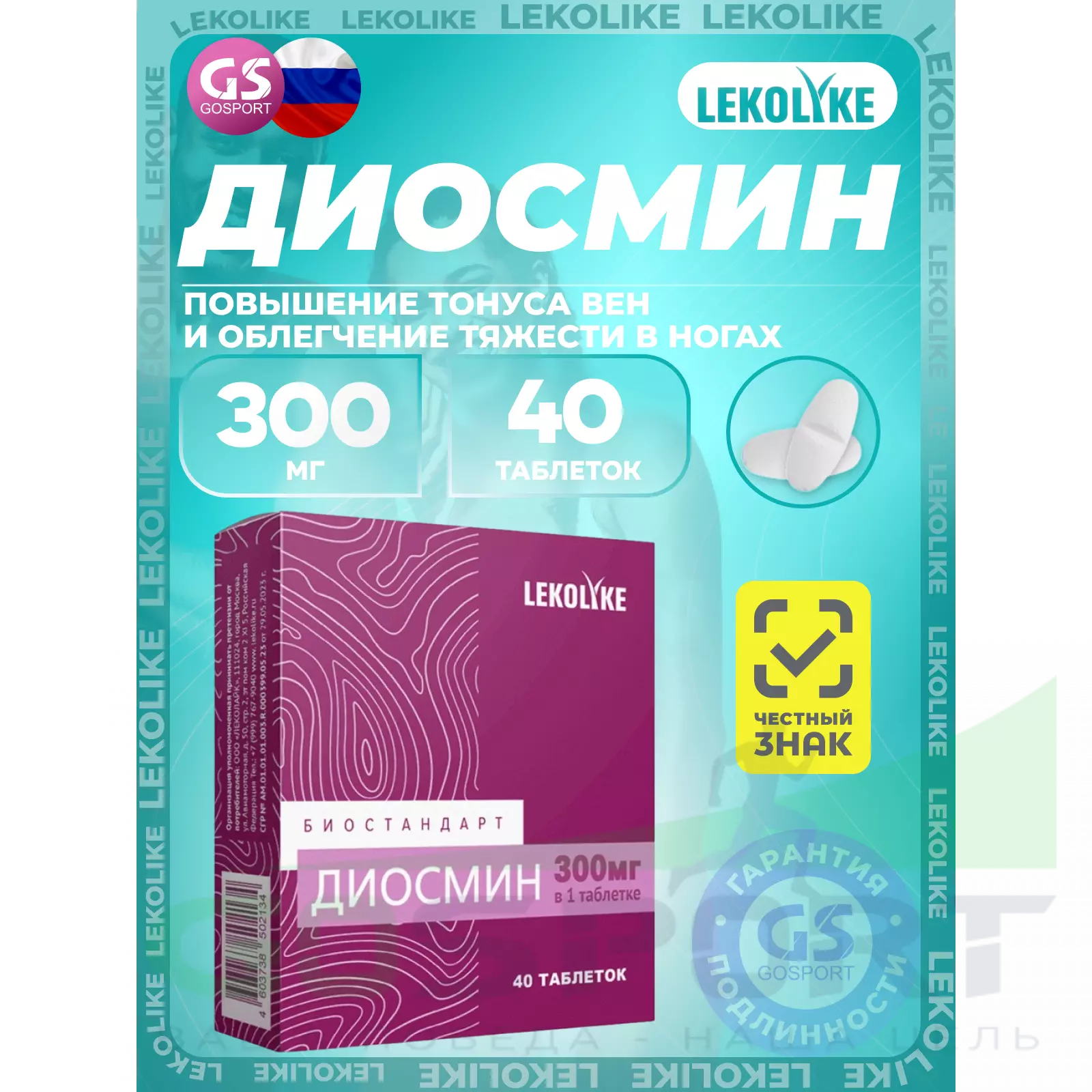 LEKOLIKE Диосмин 300 мг 40 таблеток — Повышение тонуса вен и облегчение тяжести в ногах