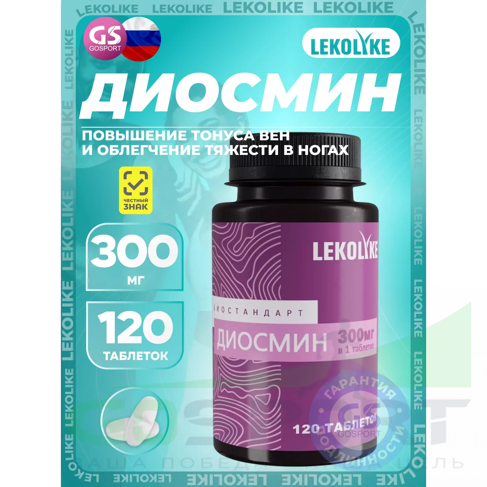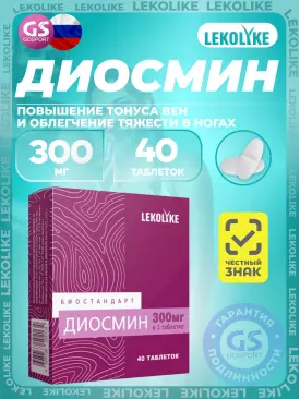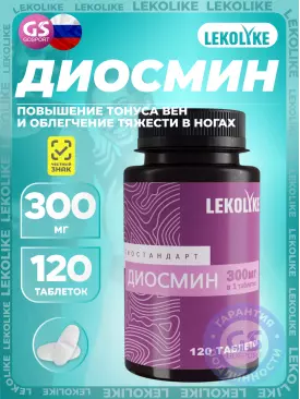 LEKOLIKE Диосмин 300 мг 120 таблеток — Повышение тонуса вен и облегчение тяжести в ногах