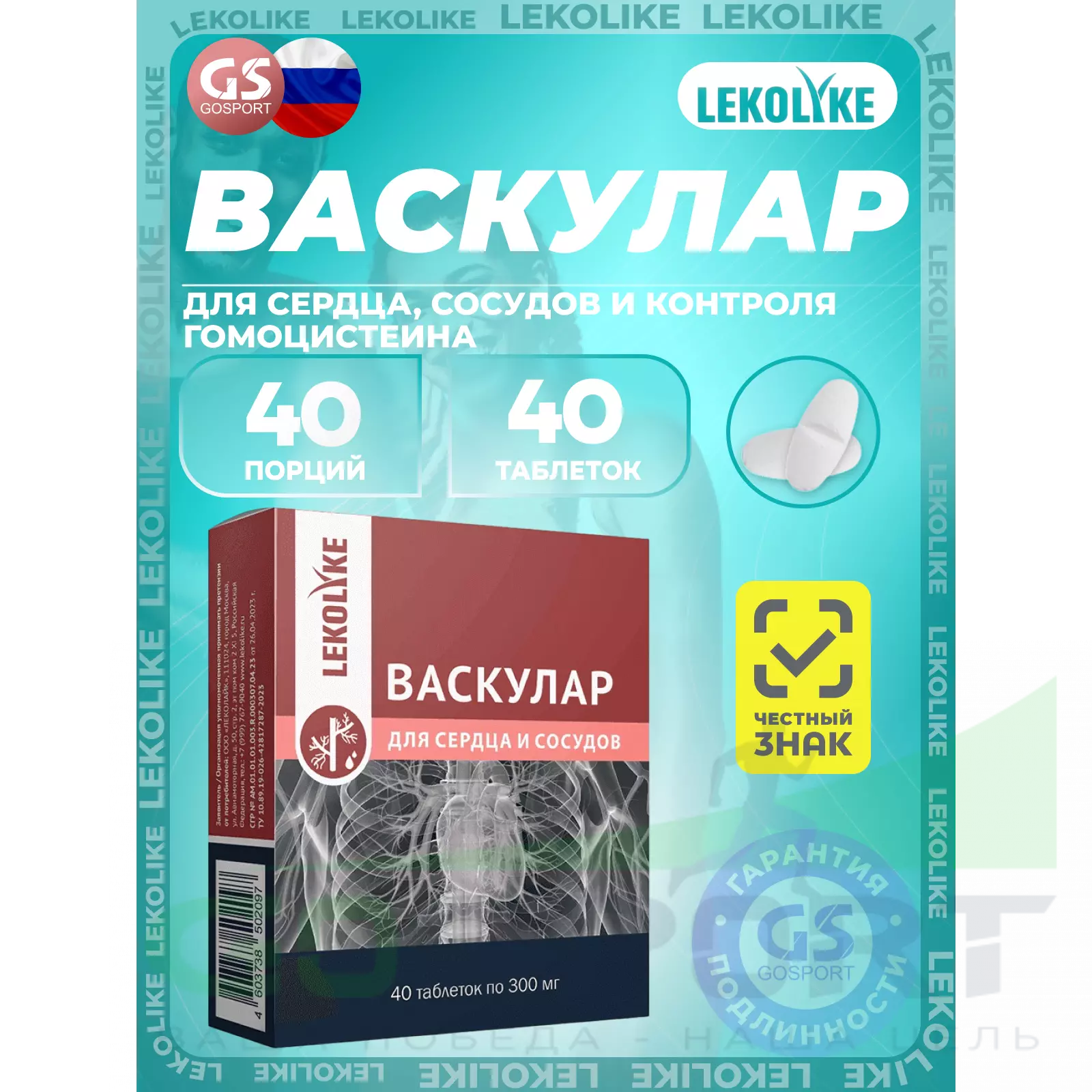 LEKOLIKE Васкулар для сердца и сосудов 40 таблеток — Для сердца, сосудов и контроля гомоцистеина