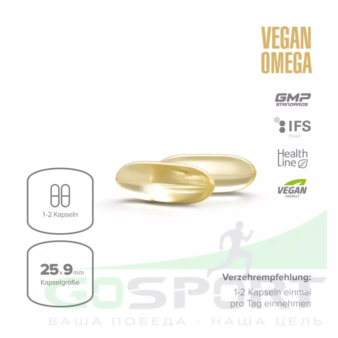 Каждая капсула Vegan Omega содержит 400 мг жирных кислот Омега-3, которые позволяют укрепить сердечно-сосудистую систему, улучшить когнитивную функцию, снизить риск воспалений и хронических болезней, таких как ревматоидный артрит, сахарный диабет, атеросклероз.