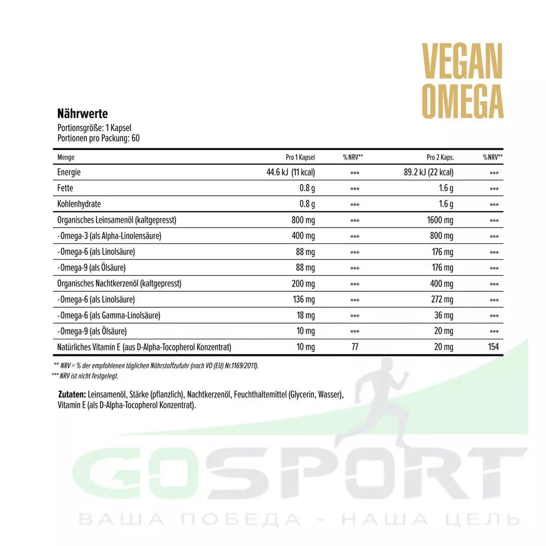 Vegan Omega – уникальный продукт, который поможет обеспечить организм необходимыми жирными кислотами растительного происхождения. Здесь источниками жирных кислот групп Омега-3-6-9 выступают масло примулы вечерней и масло семян льна. Благодаря инновационной софтгелевой капсуле из ингредиентов растительного происхождения продукт 100% веганский.