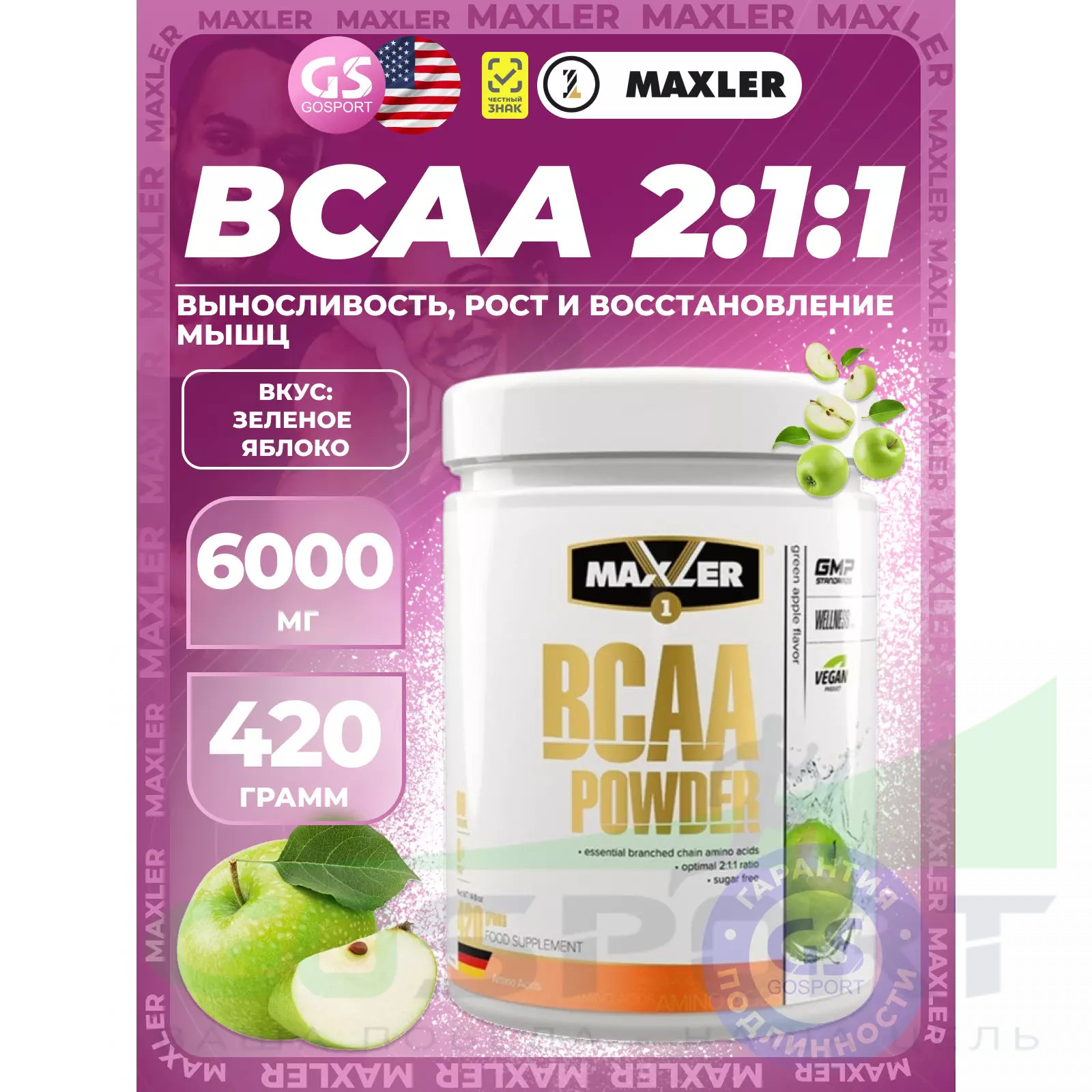 *БЦАА — аминокислоты с разветвлёнными боковыми цепями (L-изолейцин, L-лейцин, L-валин).