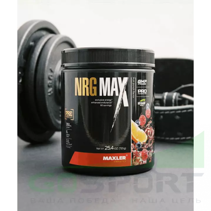 Заряжайте энергией ваши тренировки вместе с NRG Max. Лучшие ингредиенты в составе NRG Max гарантируют желаемый предтренировочный эффект. Продукт объединяет в себе 4 эффективные формулы: POWERMAX, ENERGOCORE, TURBOFOCUS и MYORECOVERY. Предтренировочный комплекс NRG Max повышает выносливость и обеспечивает интенсивный и мощный всплеск энергии, в то же время он дает возможность с легкостью одолеть более сложные режимы тренировок.