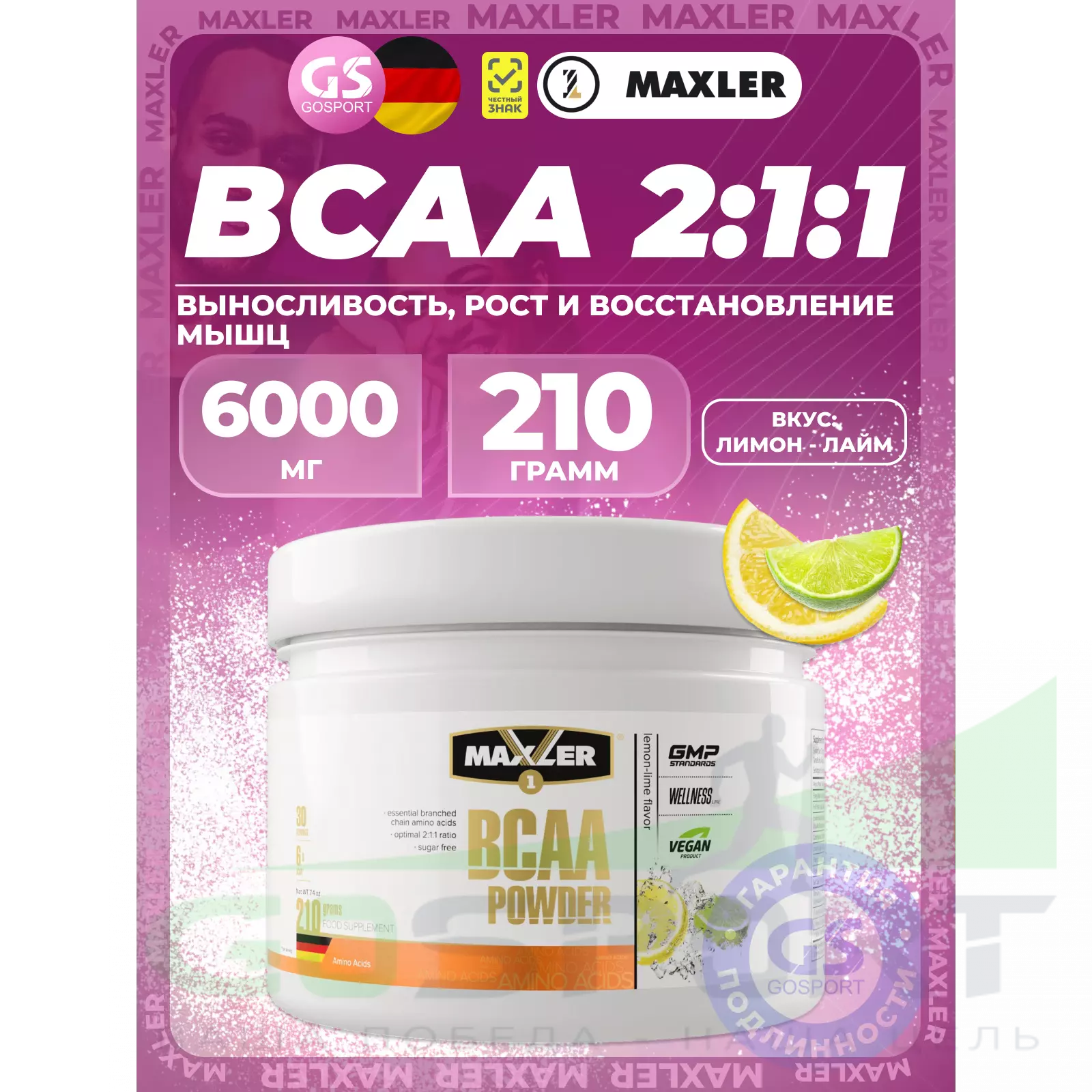 *БЦАА — аминокислоты с разветвлёнными боковыми цепями (L-изолейцин, L-лейцин, L-валин).