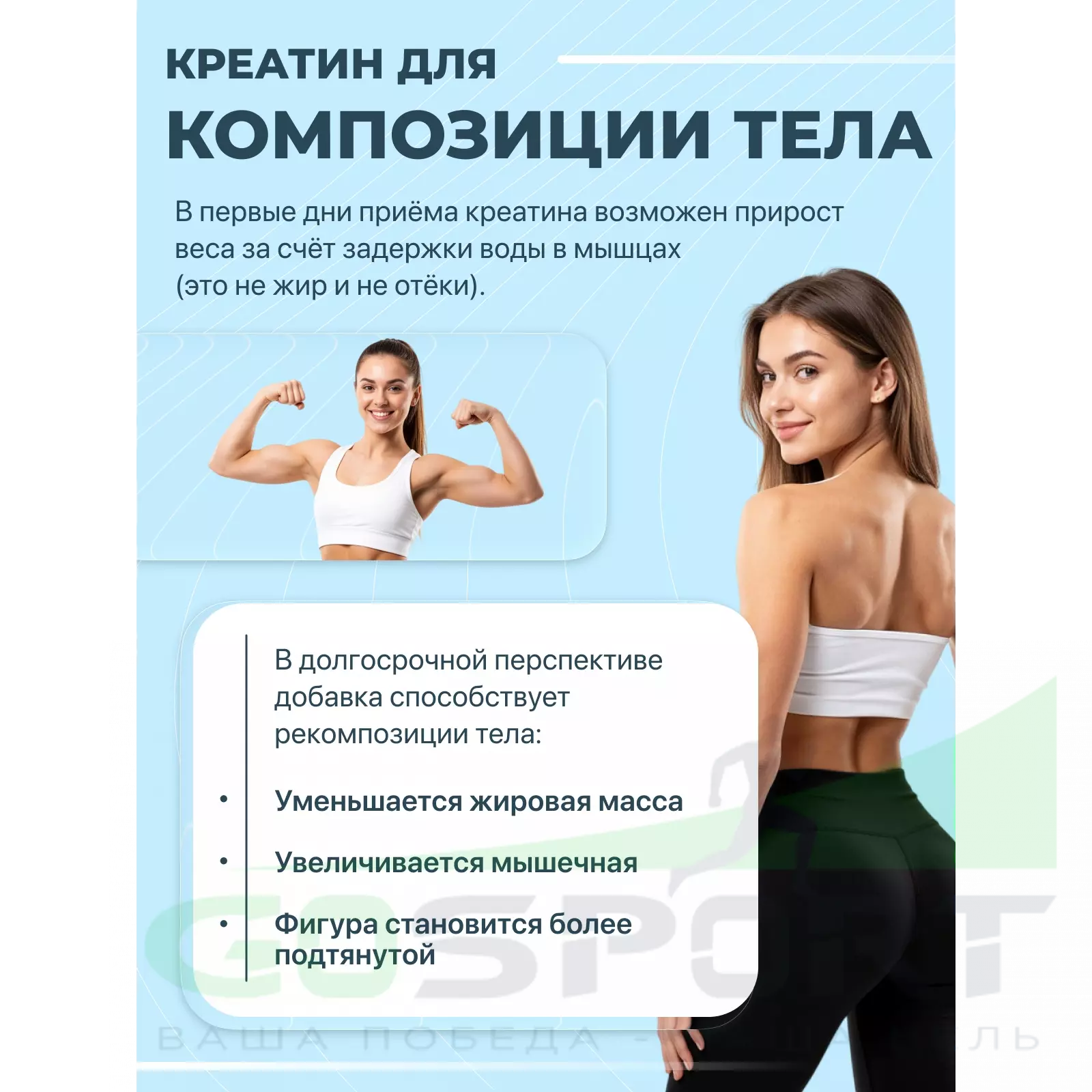 Рекомендации по применению Для получения порции разведите 3 г порошка (0,5 мерной ложки) в 200 мл жидкости. В зависимости от вашей потребности в креатине можно принять до 2 порций. Для наиболее эффективного усвоения креатина мышечными клетками его следует принимать с большим количеством жидкости.