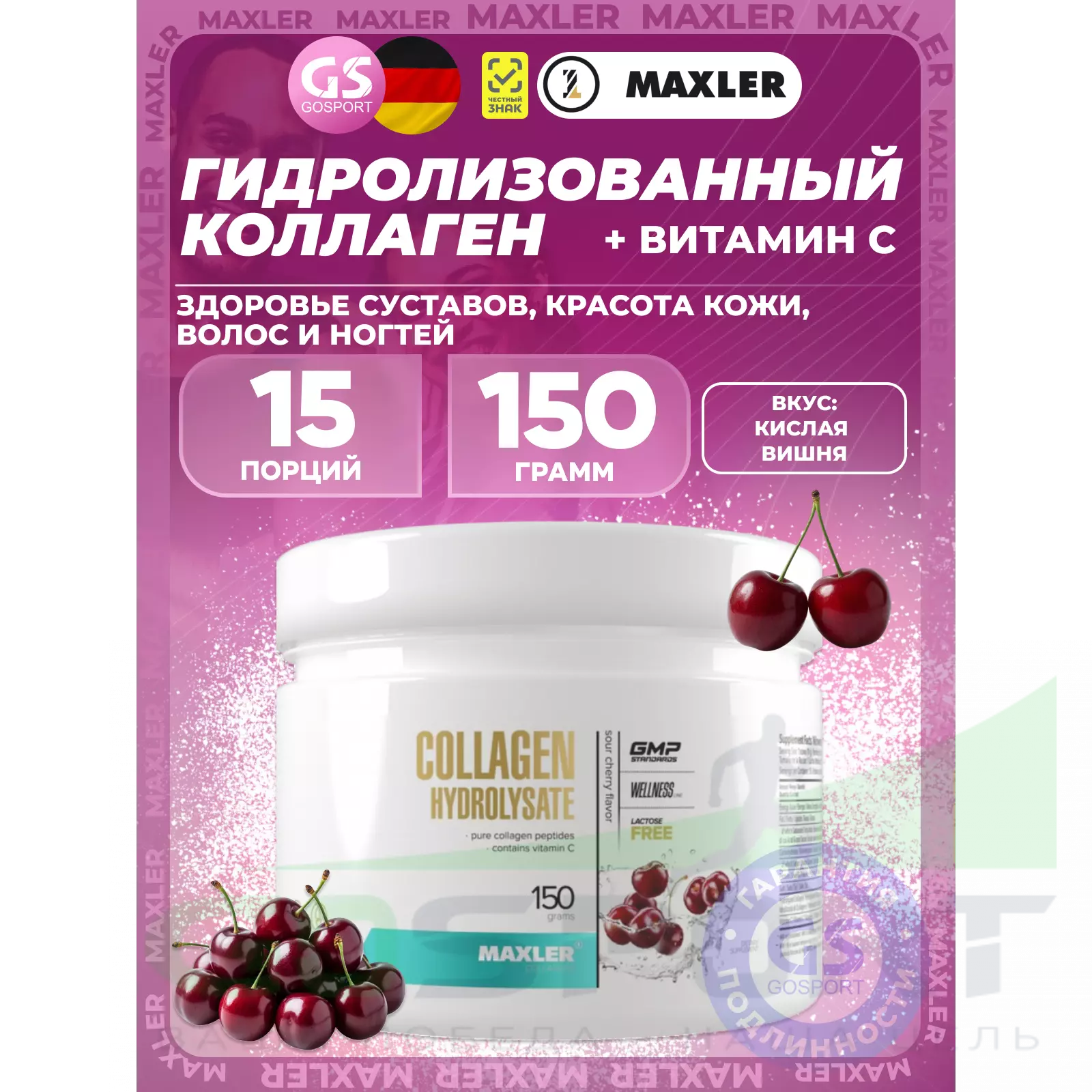 MAXLER Collagen Hydrolysate 150 г, Кислая вишня — Для кожи, волос, ногтей и суставов