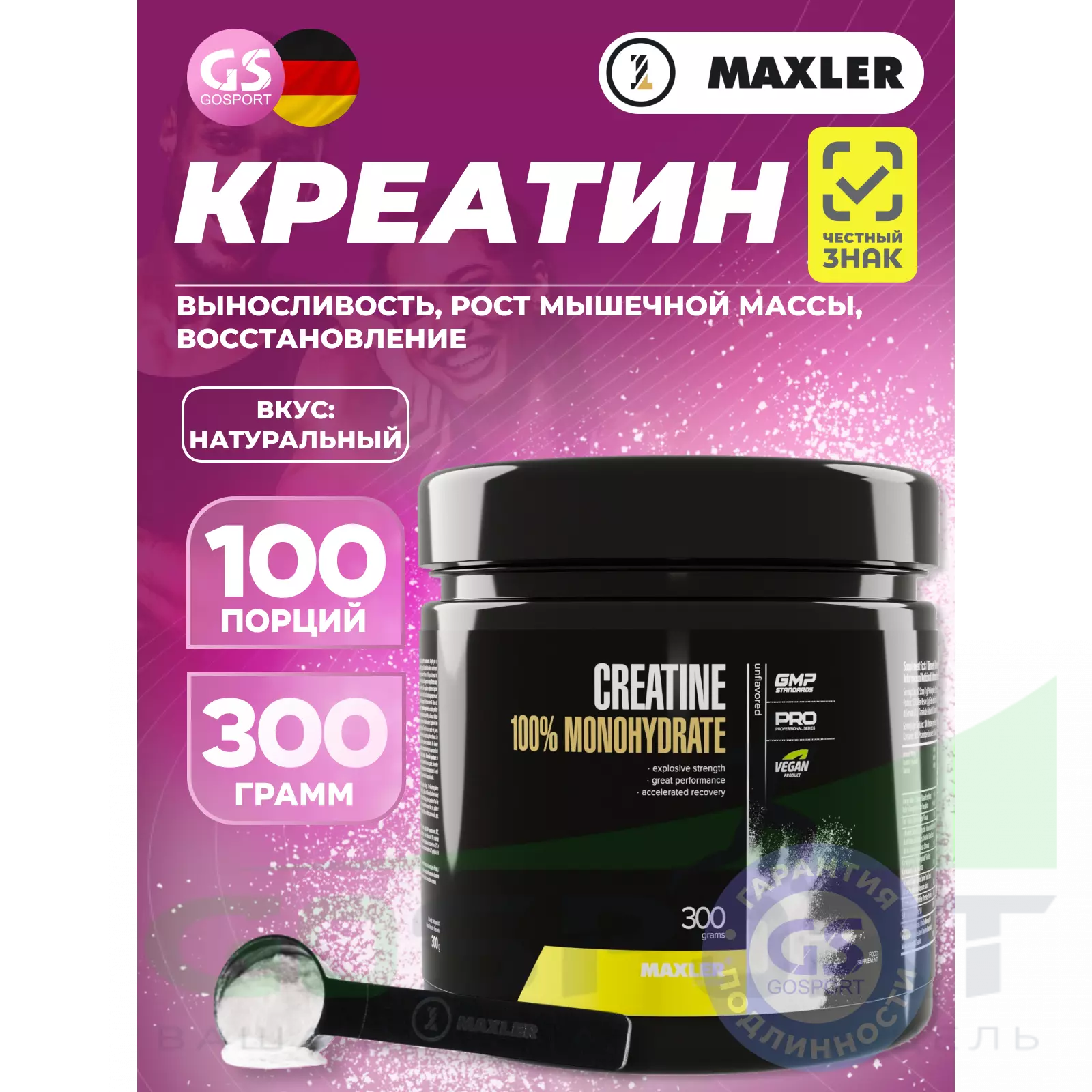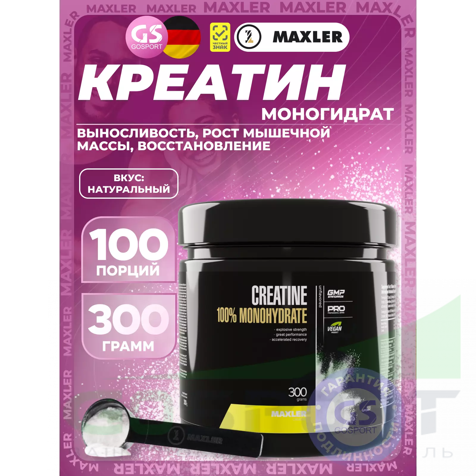 MAXLER Creatine 100% Monohydrate 300 г — Выносливость, рост мышечной массы и восстановление