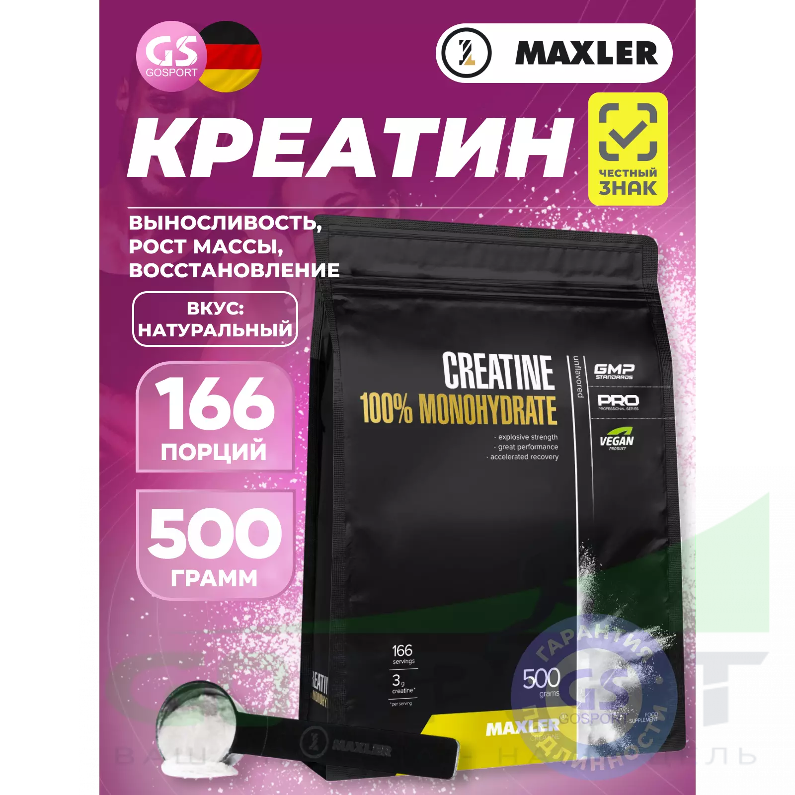 MAXLER Creatine 100% Monohydrate 500 г — Выносливость, рост мышечной массы и восстановление