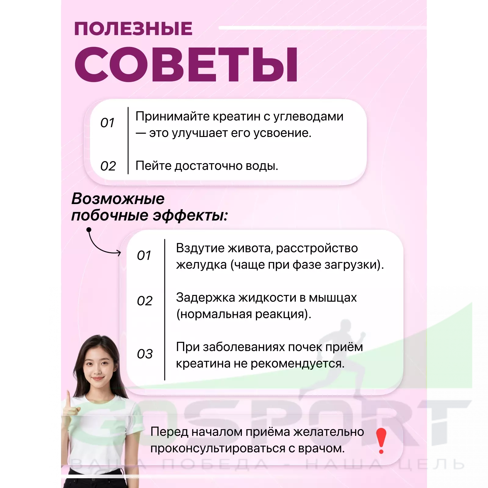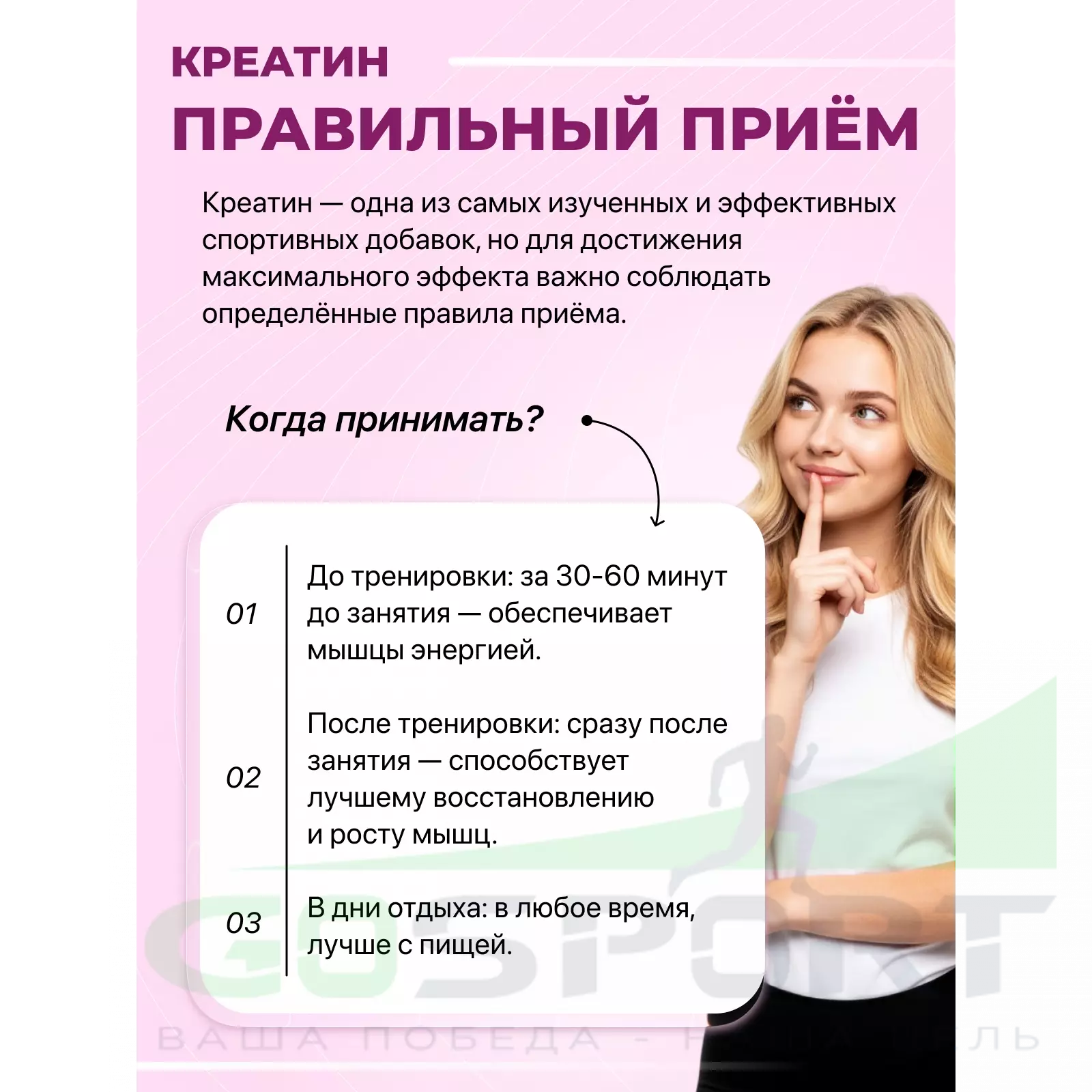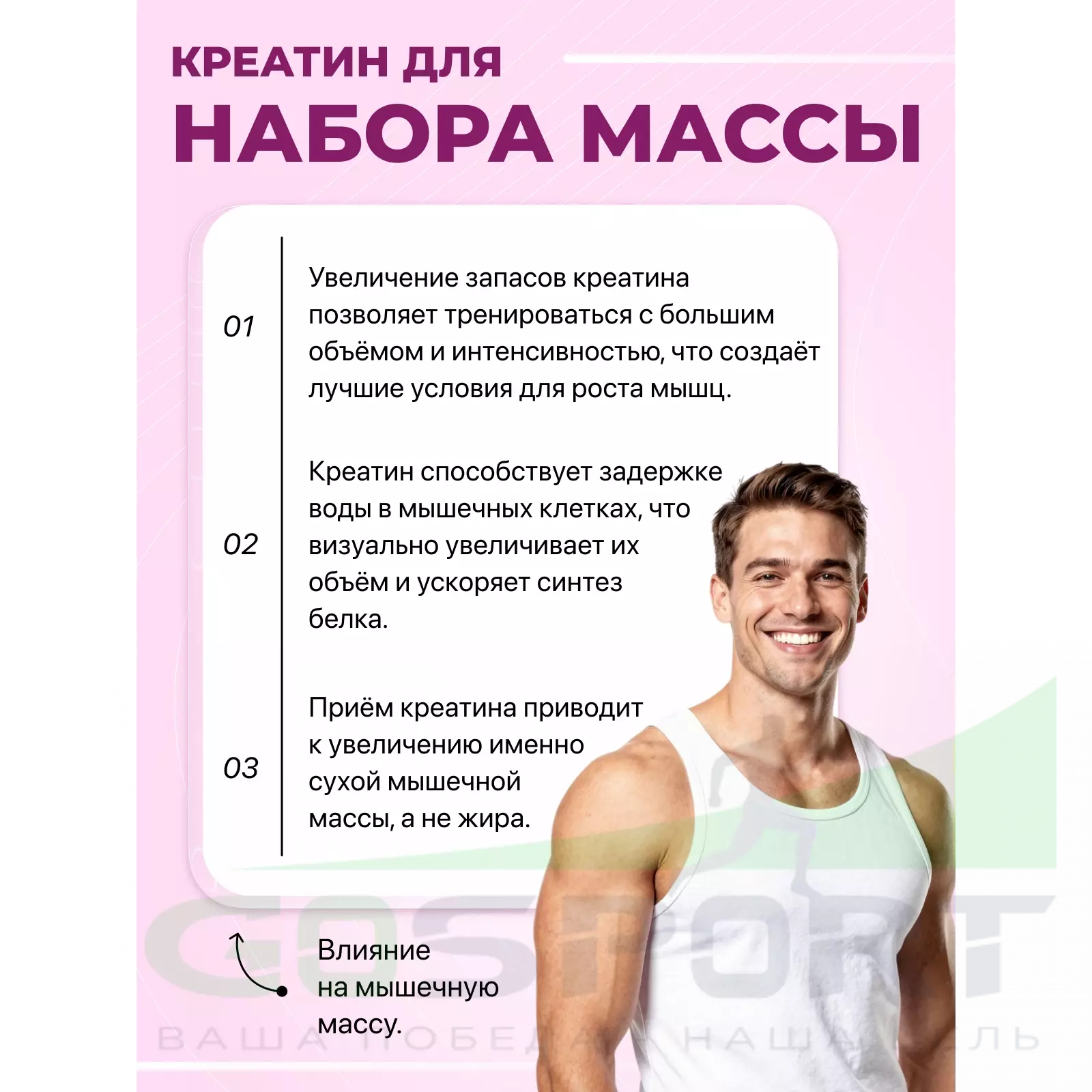 | Креатин моногидрат | 87,1 г | 2,64 г |