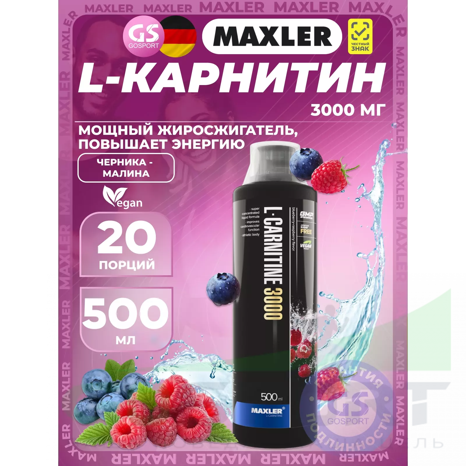 L-Carnitine 3000 mg 500 мл, Черника - Малина