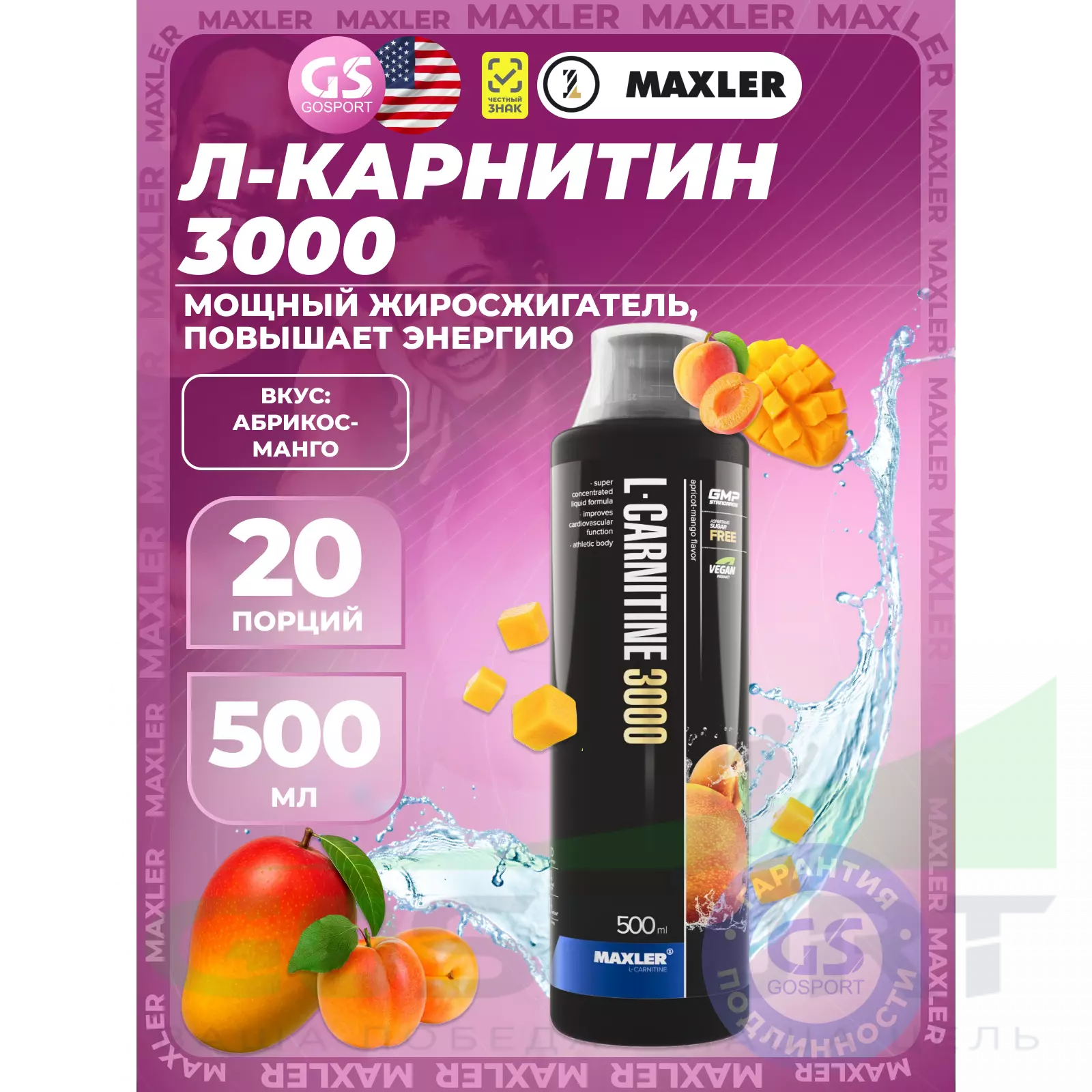 L-Carnitine 3000 mg 500 мл, Абрикос-Манго