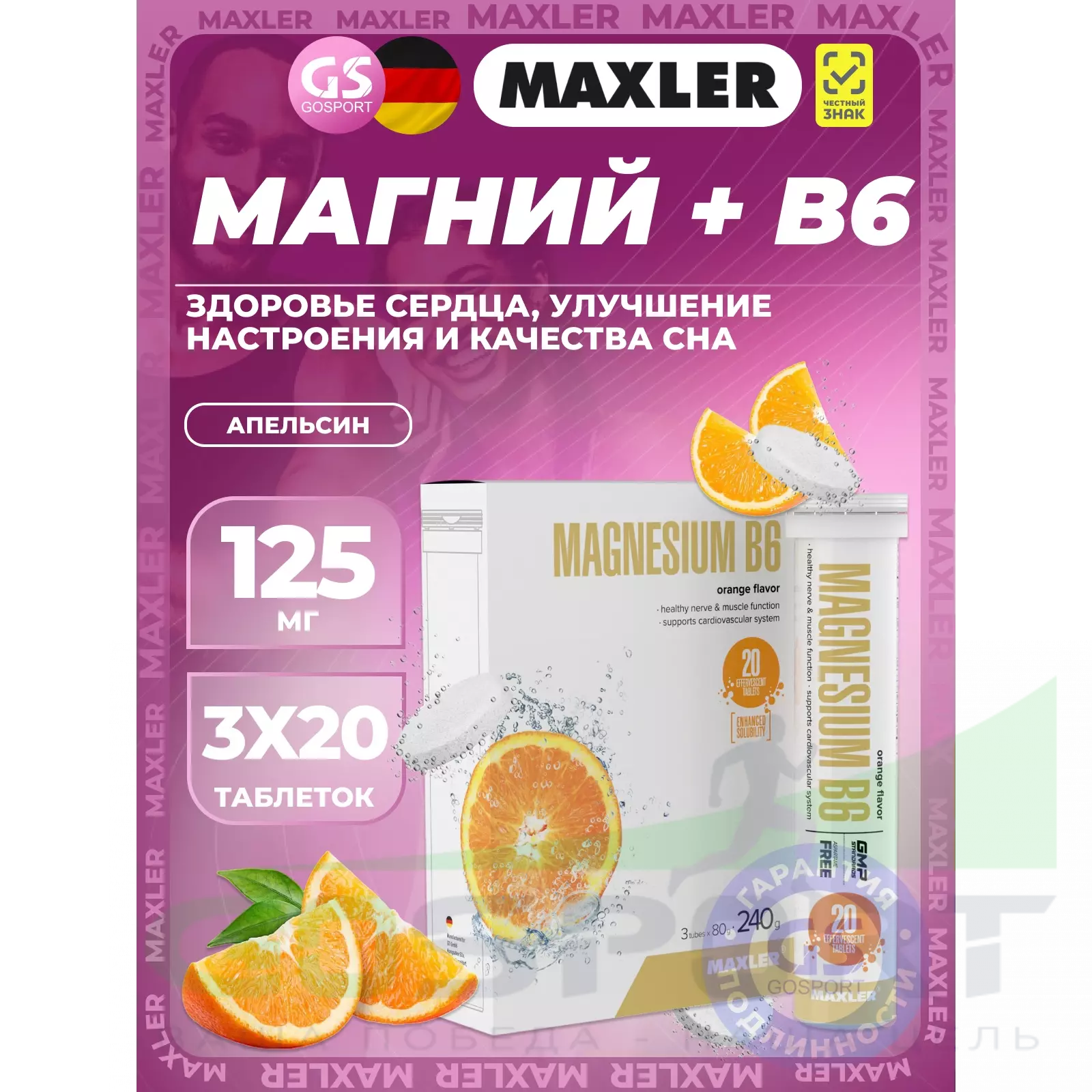 MAXLER Magnesium B6 3 x 20 шипучих таблеток, Апельсин — Здоровье сердца, улучшение настроения и качества сна