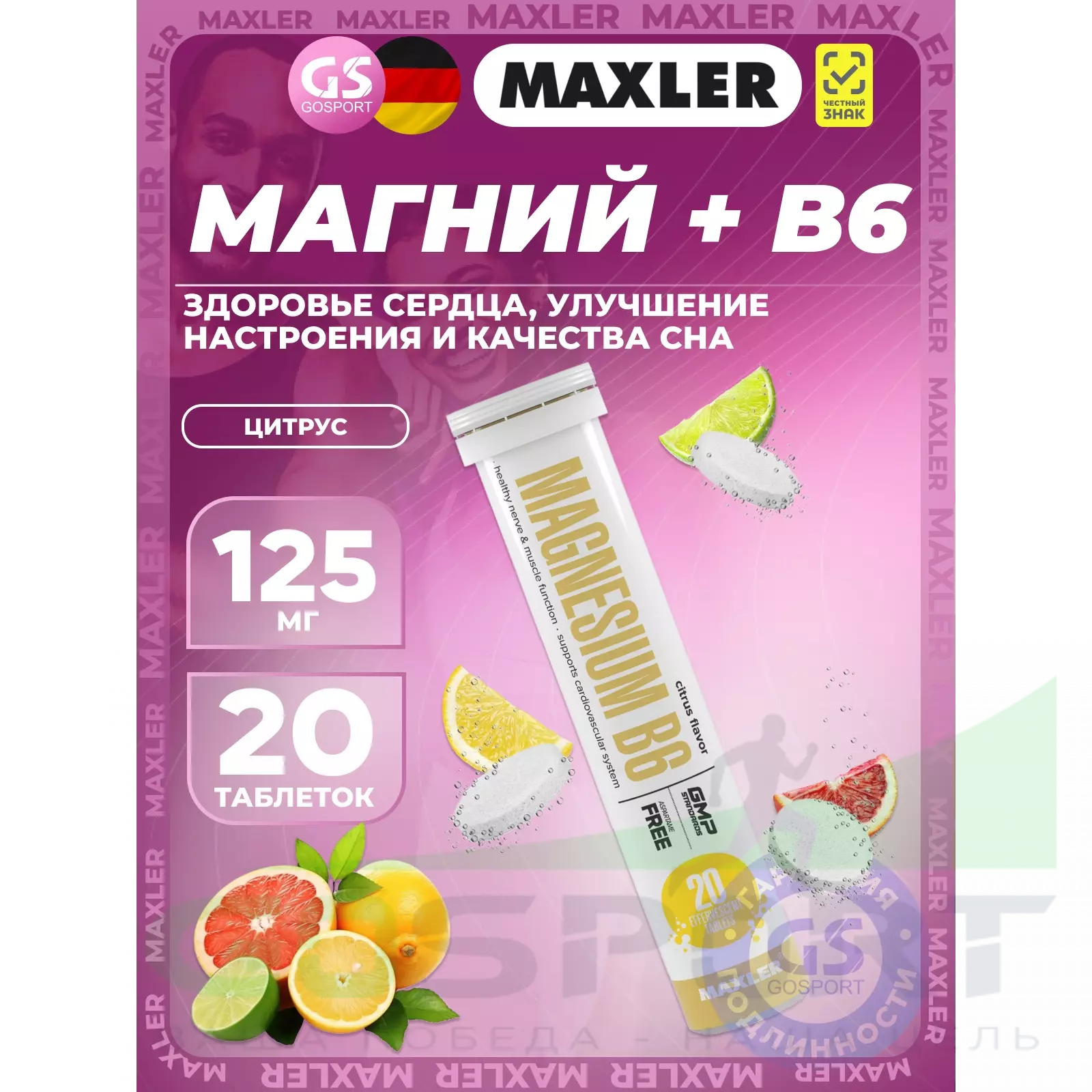 MAXLER Магний B6 в шипучках 20 шипучих таблеток, Цитрус — Поддержка здоровья сердечно-сосудистой системы