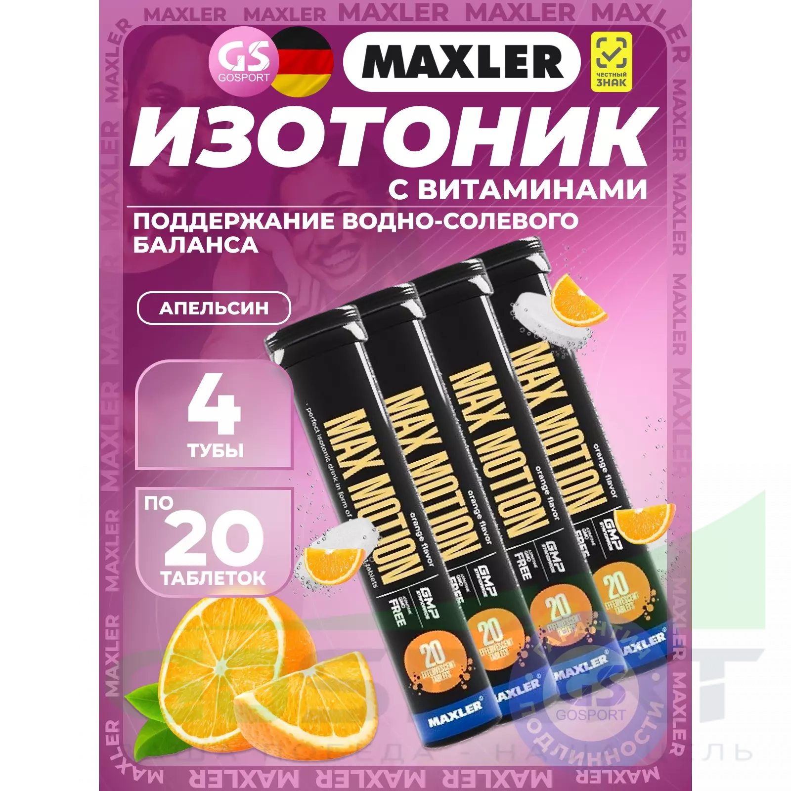 Max Motion Effervescent Tabs от Maxler – это комплекс в шипучих таблетках с натуральными фруктовыми вкусами для приготовления изотонического напитка. С каждой его порцией вы получите смесь электролитов и витаминов, что всегда актуально в условиях активных тренировок или во время соревнований. Восполняя запасы электролитов, вы поддерживаете нормальную гидратацию, а также высокий уровень работоспособности своего организма.