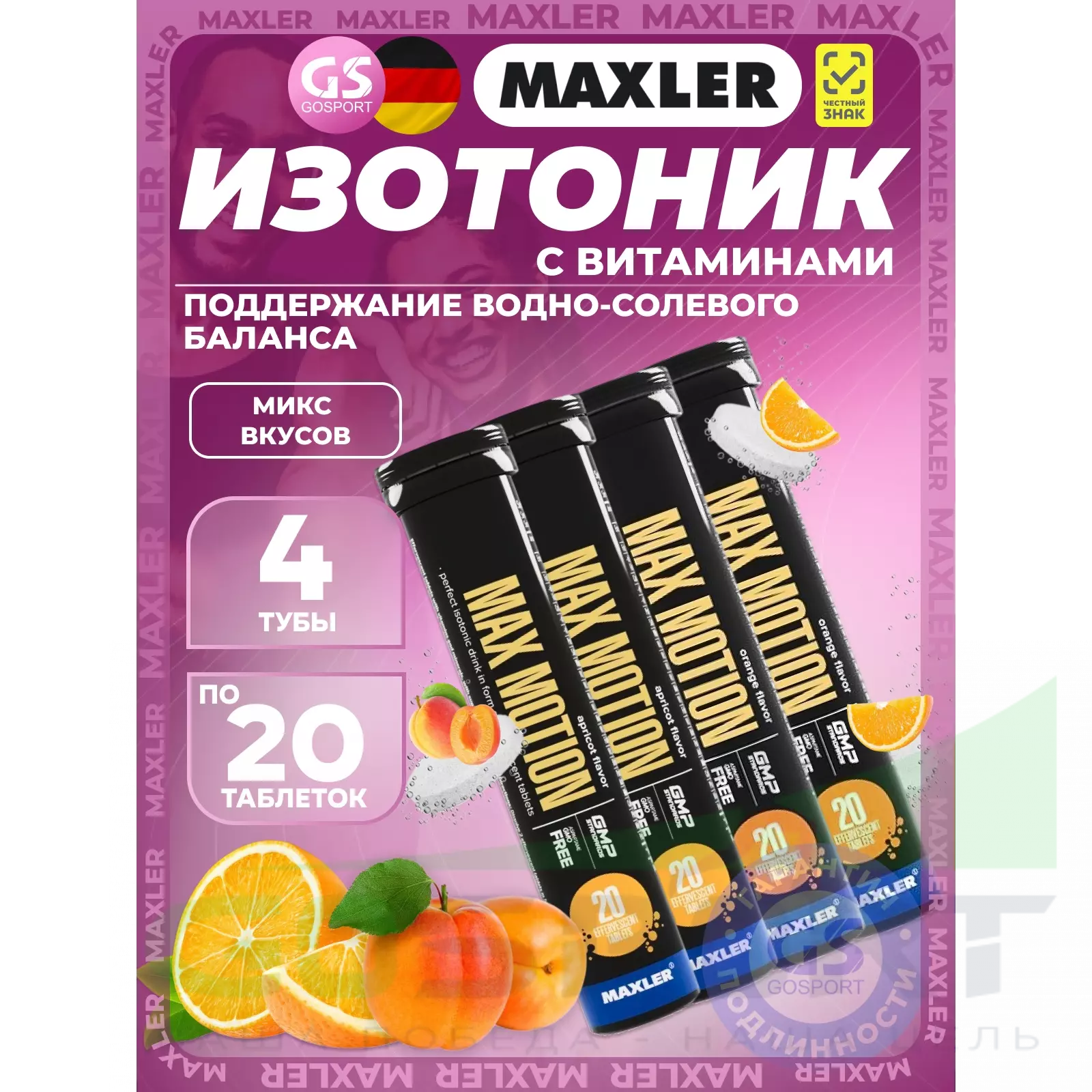 Max Motion Effervescent Tabs от Maxler – это комплекс в шипучих таблетках с натуральными фруктовыми вкусами для приготовления изотонического напитка. С каждой его порцией вы получите смесь электролитов и витаминов, что всегда актуально в условиях активных тренировок или во время соревнований. Восполняя запасы электролитов, вы поддерживаете нормальную гидратацию, а также высокий уровень работоспособности своего организма.