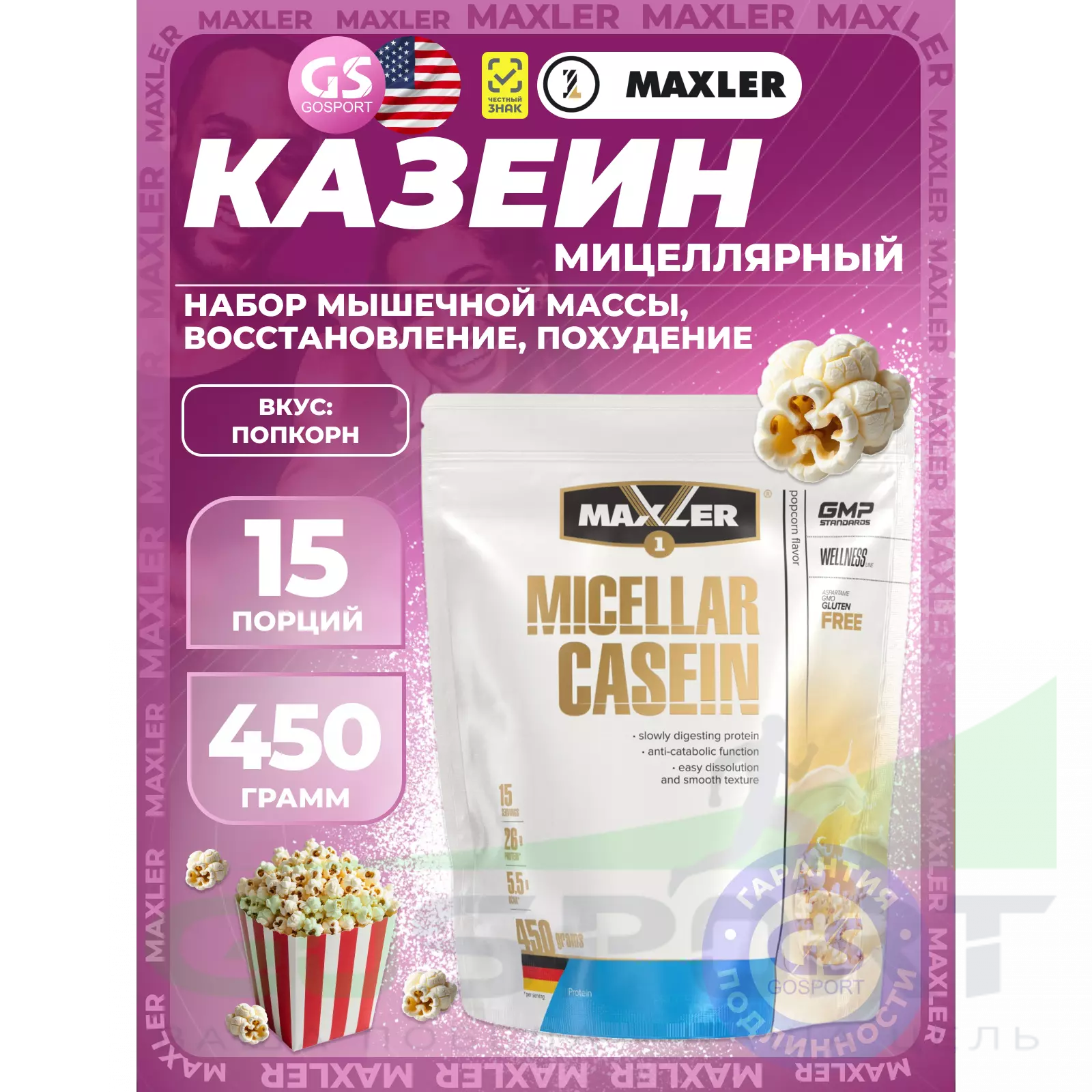 MAXLER Micellar Casein 450 г, Попкорн — Стимуляция синтеза белка, Длительное насыщение