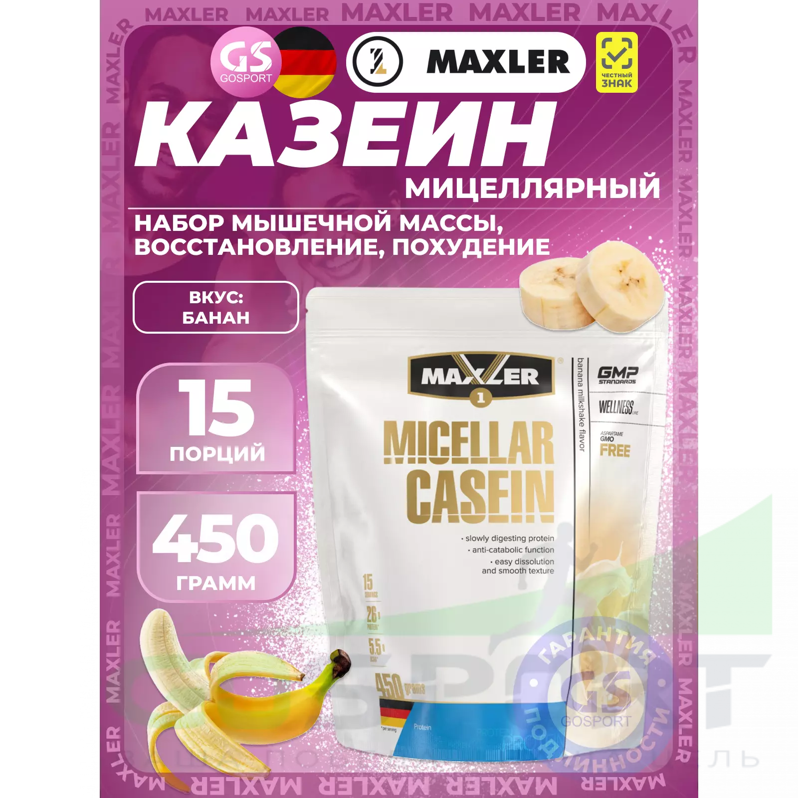 MAXLER Micellar Casein 450 г, Банан — Стимуляция синтеза белка, Длительное насыщение