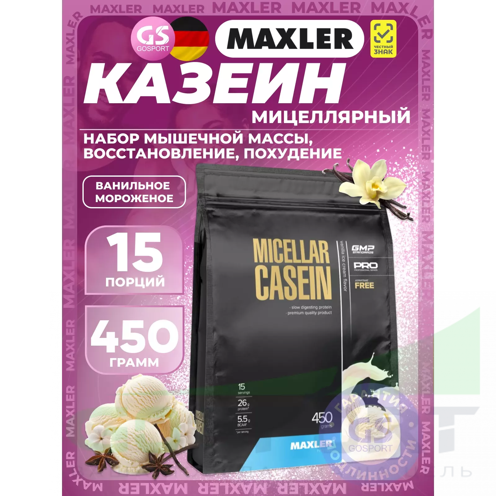 MAXLER Micellar Casein 450 г, Ванильное мороженое — Стимуляция синтеза белка, Длительное насыщение