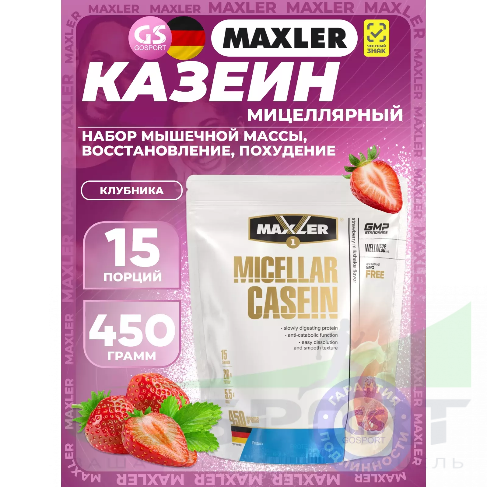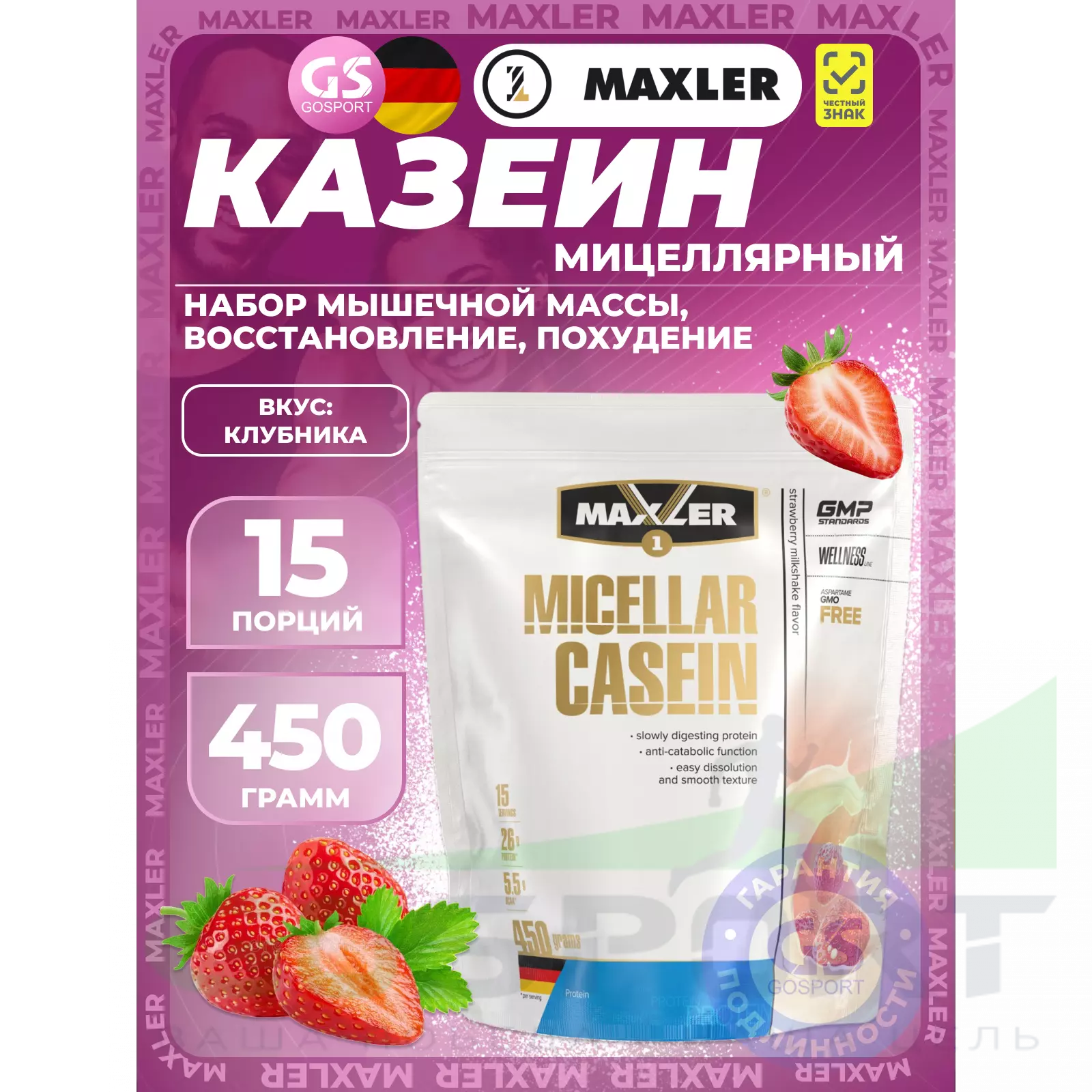 MAXLER Micellar Casein 450 г, Клубника — Стимуляция синтеза белка, Длительное насыщение