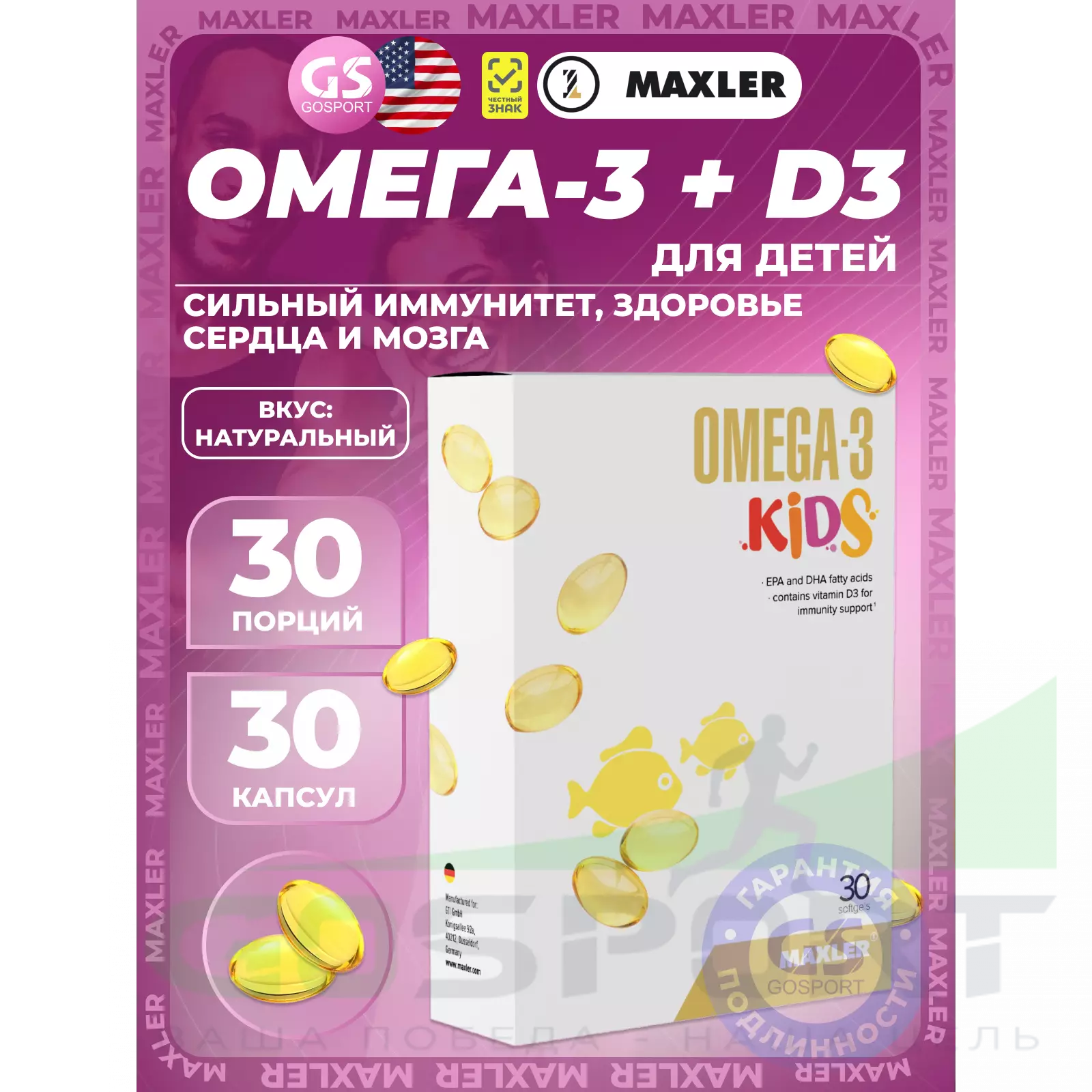 MAXLER Omega-3 260 mg Kids 30 гелевых капсул — Поддержка мозга, иммунитета и здоровья сердца