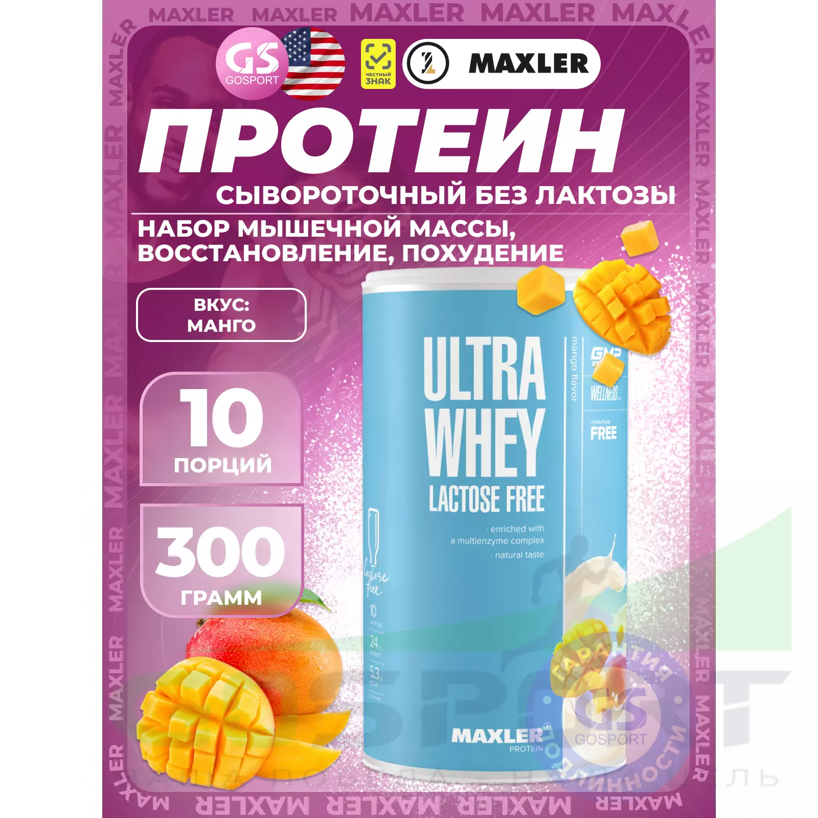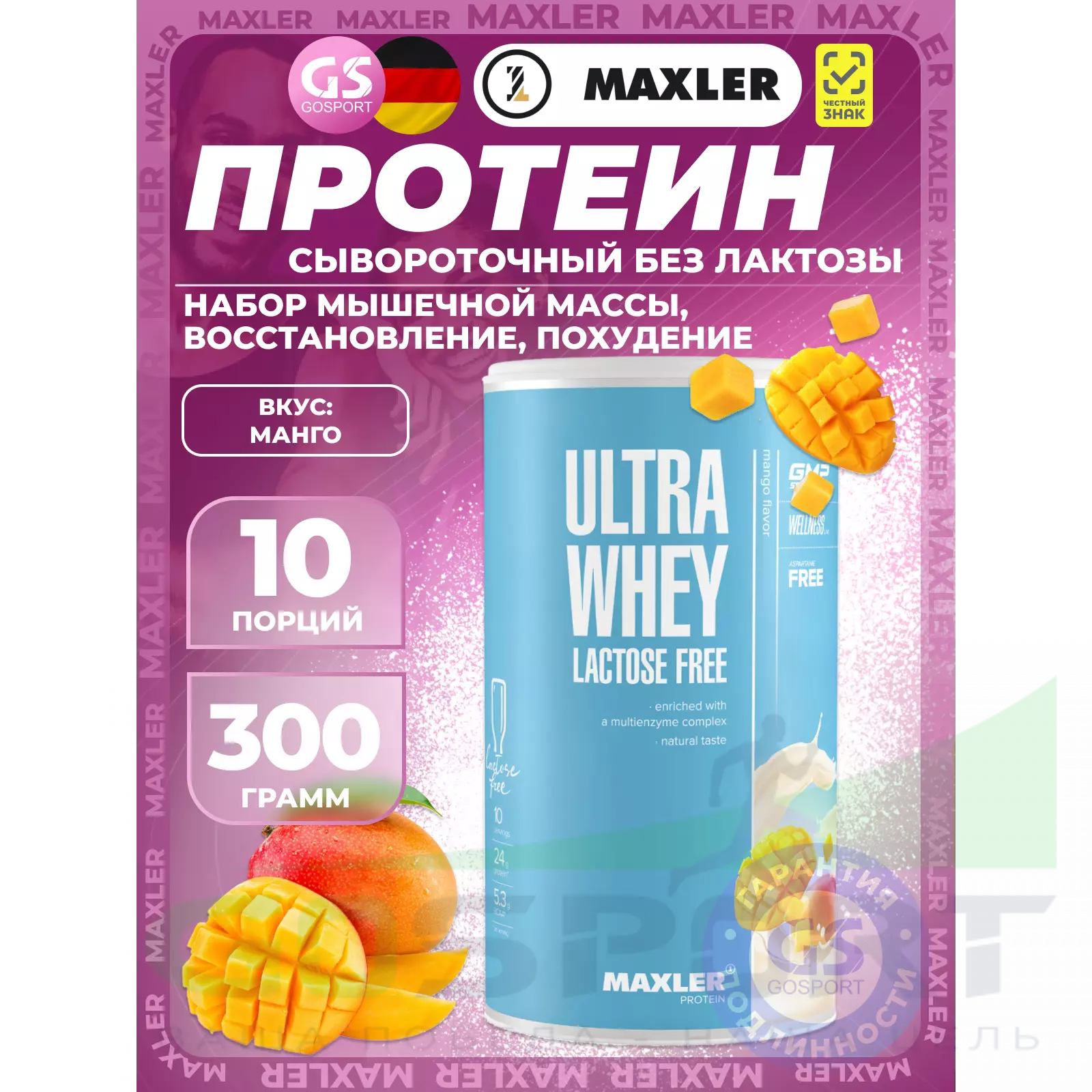 MAXLER Ultra Whey Lactose Free 300 г, Манго — Отсутствие лактозы, Минимальное количество жиров и сахаров