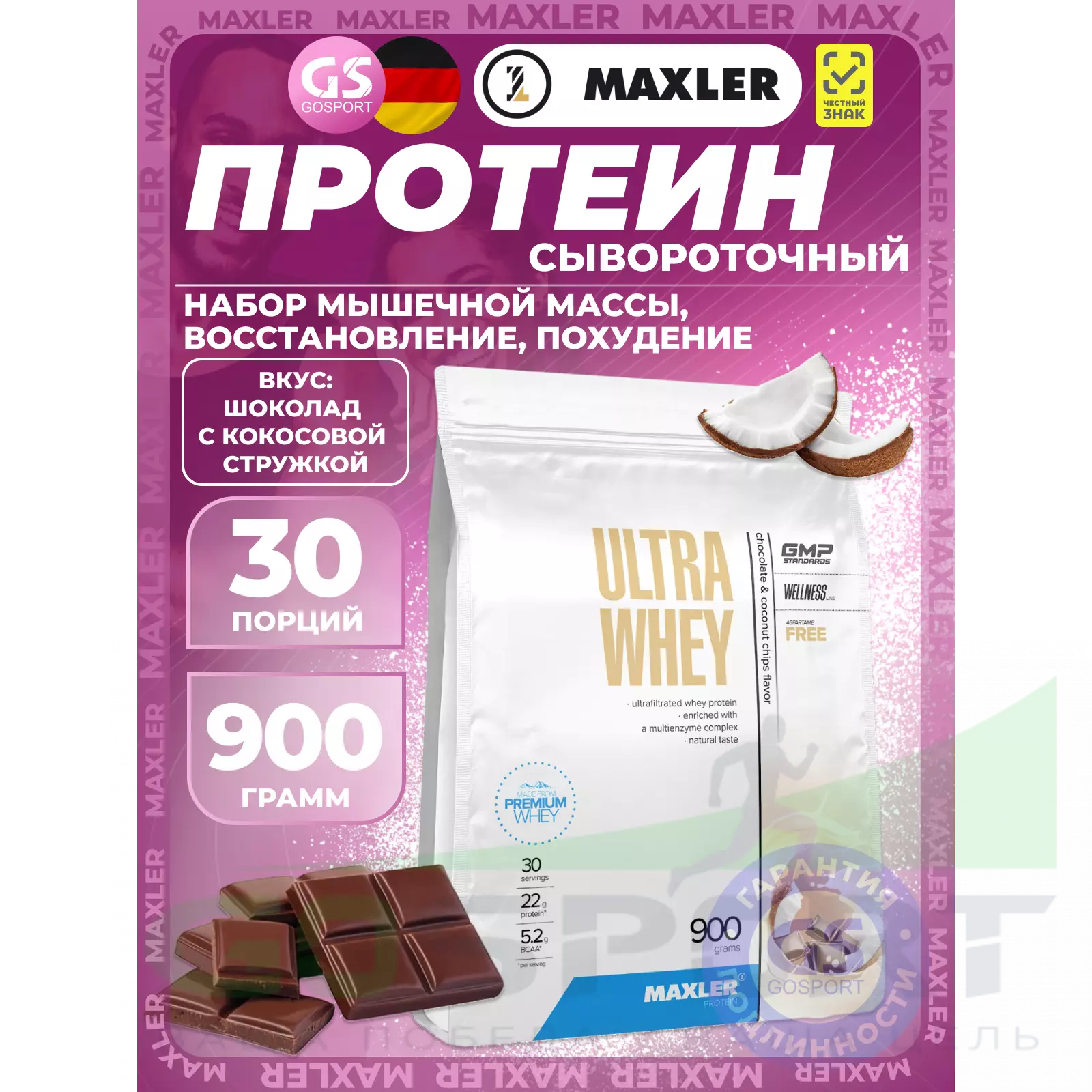 MAXLER Ultra Whey 900 г, Шоколад с кокосовой стружкой — Для роста и восстановления мышц